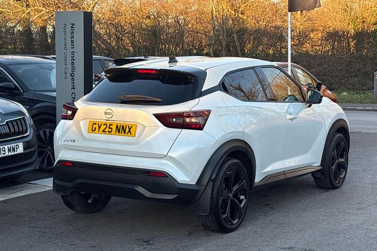 This 2025 Nissan Juke DIG-T Tekna is a Nissan manufacturer approved vehicle with only one owner from new, offering peace of mind and a well cared for history. This stylish compact SUV features a responsive 1.0 litre petrol engine, meeting Euro 6 emission standards. Inside, you'll find seamless integration with your digital life thanks to wireless Apple CarPlay and Google Android Auto, keeping you connected and entertained on every journey.The Juke DIG-T Tekna stands out with its impressive fuel economy, achieving a highlight of 49 miles per gallon, and also boasts low CO2 emissions, indicating its efficiency compared to similar vehicles. This combination of economical running costs and advanced connectivity makes it a practical and enjoyable choice for everyday driving..