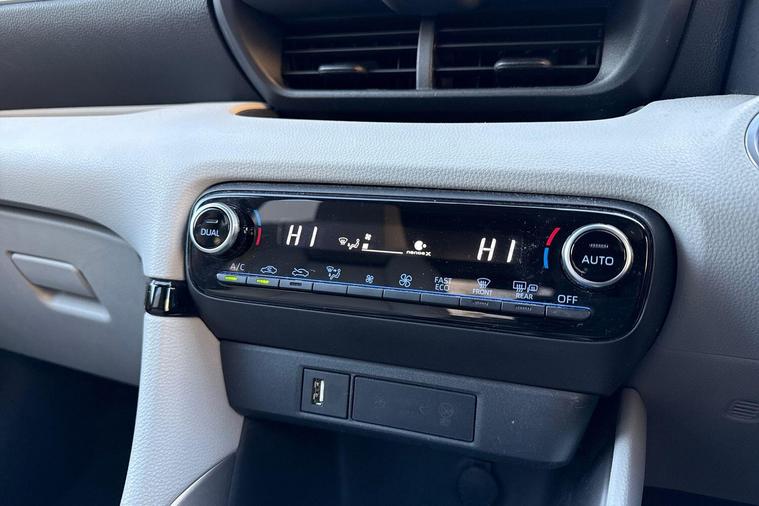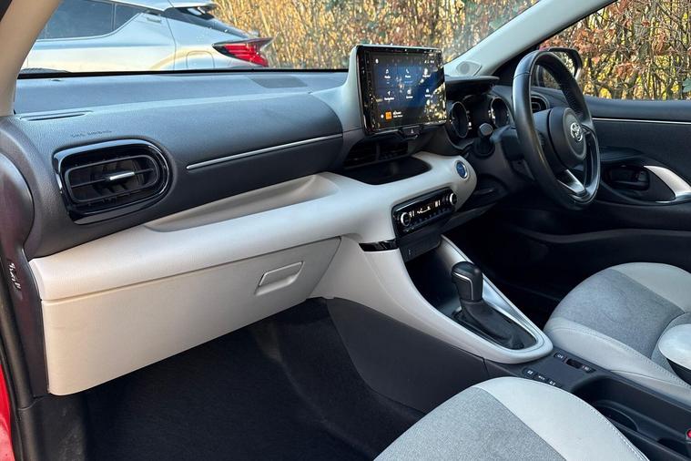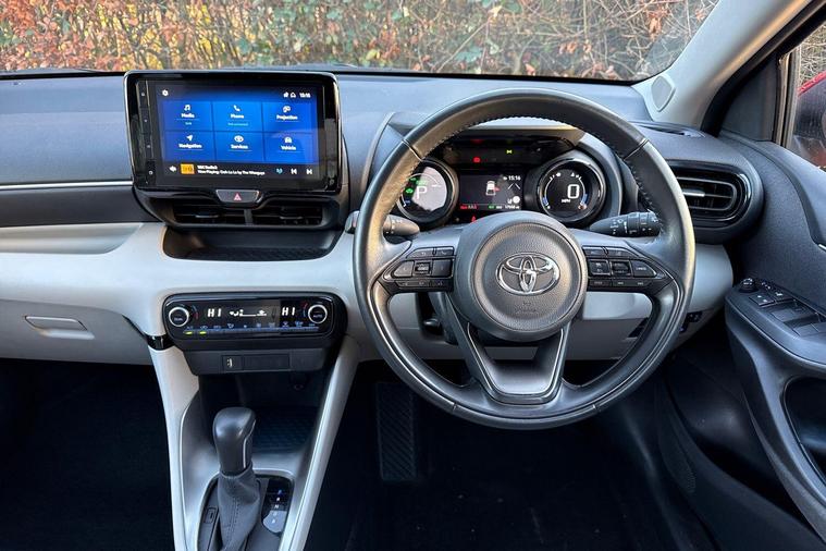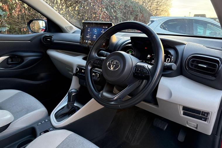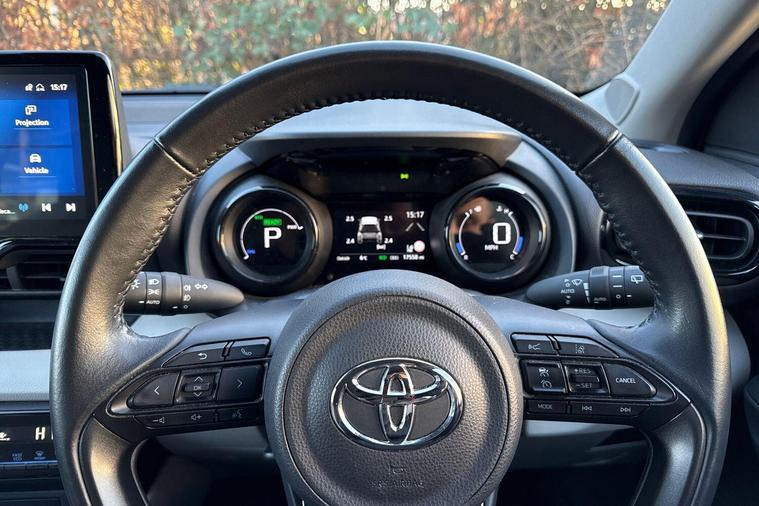 This 2022 Toyota Yaris VVT-h Excel is a superb example, having had only one owner since new. This Euro 6 compliant hatchback boasts a 1.5L Petrol Hybrid engine, offering an impressive fuel economy of 66 mpg. The Excel trim level comes equipped with a suite of convenient features, including a reversing camera with parking assistance, automatic headlights, and dual zone automatic air conditioning for ultimate comfort. Stay connected on the go with Bluetooth connectivity, and enjoy peace of mind with Toyota Safety Sense 2, which includes adaptive cruise control.The low CO2 emissions of this Yaris highlight its efficiency, making it a more environmentally conscious choice compared to many other vehicles in its class. The combination of its hybrid technology, excellent fuel economy, and advanced safety features positions this Yaris Excel as a standout option for those seeking a practical, economical, and well equipped compact car..