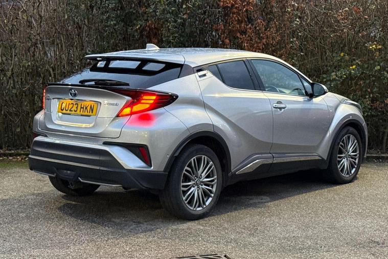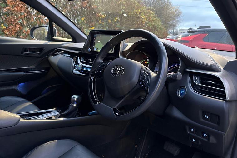 This 2023 Toyota C-HR VVT-h Excel is a Euro 6 compliant vehicle, offering an efficient and modern driving experience. It features a 1.8L Petrol Hybrid engine, providing a smooth and responsive performance. The Excel trim level comes equipped with the Tech Pack, which includes Blind Spot Assistance, Keyless Entry, and front and rear parking sensors for enhanced convenience and safety. You'll also appreciate the Smart Entry and Push-Button Start system, along with heated driver and front passenger seats for added comfort. Adaptive LED headlights illuminate your way, and Bluetooth connectivity keeps you connected on the go.The Toyota C-HR VVT-h Excel stands out with its impressive fuel economy, achieving a highlight of 57 mpg, which indicates it is more economical than many similar vehicles. Furthermore, its low insurance group rating suggests that running costs will be more affordable. The vehicle also boasts low CO2 emissions, demonstrating its commitment to environmental efficiency and positioning it as a more responsible choice compared to other cars in its class..