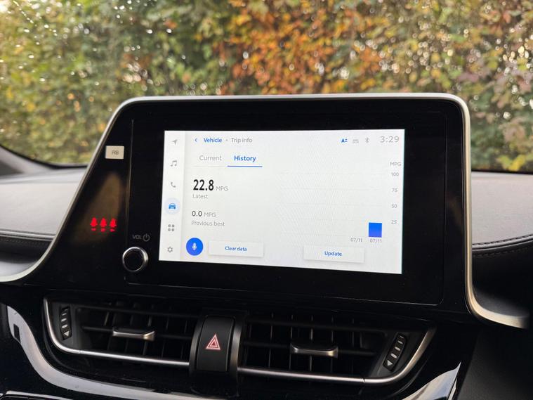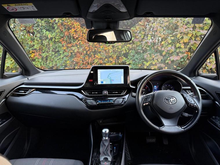 This 2022 Toyota C-HR VVT-h GR SPORT is a superb example, having had only one owner since new. This stylish hatchback features a 1.8L petrol hybrid engine, meeting Euro 6 emissions standards. It comes equipped with the GR SPORT trim, enhancing its appeal. For convenience, it includes a Parking Pack with front and rear parking sensors, a reversing camera, and automatic headlights. Inside, you'll find the Toyota Touch 2 multimedia system, complete with an 8 inch display, Android Auto, Apple Car Play, and Bluetooth connectivity.This particular C-HR GR SPORT offers excellent value, with a highlighted fuel economy of 58 miles per gallon, demonstrating its efficiency compared to many other vehicles. Its low CO2 emissions also contribute to its environmental credentials. Furthermore, its low insurance group rating means that running costs are kept to a minimum, making it an attractive choice for a wide range of drivers..