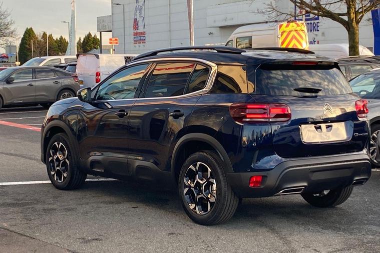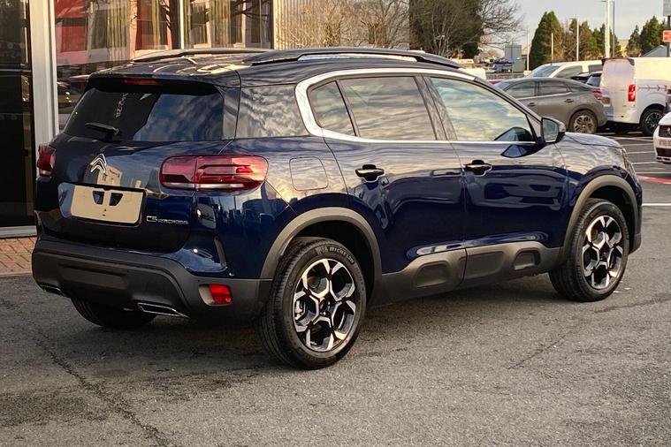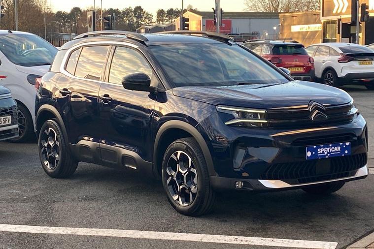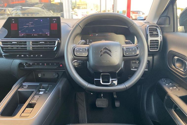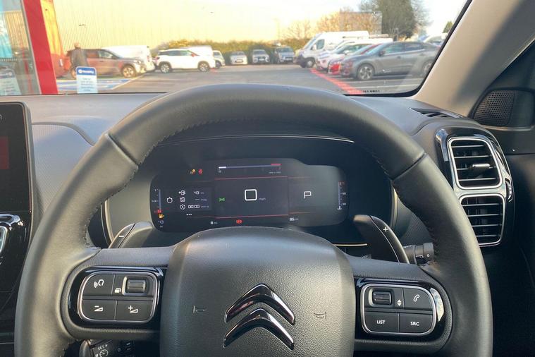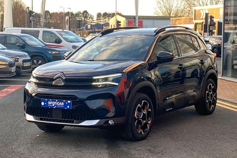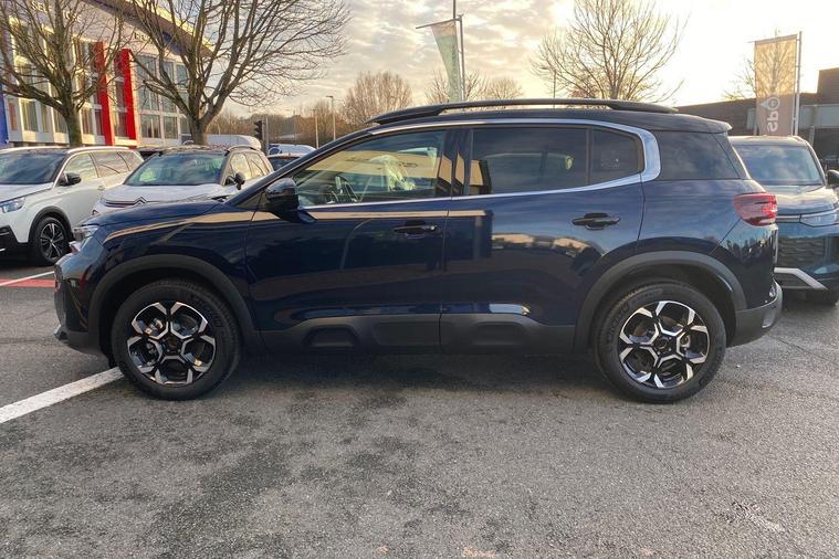 This 2025 Citroen C5 Aircross BlueHDi MAX Edition presents an exceptional opportunity with an incredibly low mileage of just 5 miles, practically as new. This one owner vehicle boasts a full service history and is Citroen manufacturer approved, offering peace of mind. Powered by an efficient 1.5L Euro 6 diesel engine, this MAX Edition model combines practicality with advanced technology. Notable features include automatic headlights with welcome and goodbye lighting, electric heated and folding door mirrors with LED approach lighting and blind spot monitoring, and a comprehensive Drive Assist Pack with adaptive cruise control. The City Camera Pack enhances parking convenience with front and rear sensors and a rear camera, while LED headlights with distinctive daytime running lights ensure excellent visibility.Experience impressive fuel economy with a highlighted 54 mpg, demonstrating the efficiency of this diesel engine. The C5 Aircross also offers generous boot space, making it ideal for families and everyday life. Furthermore, its low CO2 emissions are a key advantage, positioning it favourably against many other vehicles in its class. This combination of low mileage, comprehensive features, and excellent economy makes this Citroen C5 Aircross a standout choice..
