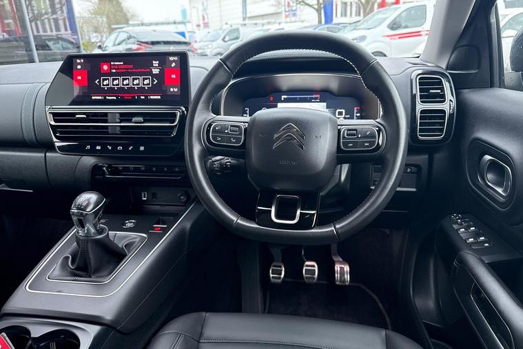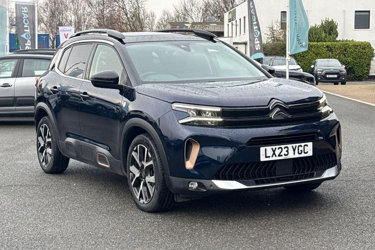 Boasting an exceptionally low mileage of just 13860 miles for a 2023 model, this Citroen C5 Aircross BlueHDi C Series Edition presents a superb opportunity. This Euro 6 compliant 1.5 litre diesel SUV comes with a full service history and is Citroen manufacturer approved, offering peace of mind alongside its 12 month warranty. Inside, you'll find an opening panoramic roof with an electric sunblind, an acoustic laminated windscreen with rain and brightness sensors, and automatic dual zone climate control. The electric, heated, and folding door mirrors feature LED approach lighting and blind spot monitoring indicators, complemented by keyless entry and start for ultimate convenience.This C5 Aircross stands out with its impressive fuel economy, achieving a remarkable 61 miles per gallon, which is significantly better than many other vehicles in its class. Its low CO2 emissions further contribute to its efficiency, making it an economical choice. Furthermore, the low insurance group rating means lower running costs, and the generous boot space ensures practicality for all your needs. These highlights collectively demonstrate how this Citroen C5 Aircross offers a superior ownership experience..
