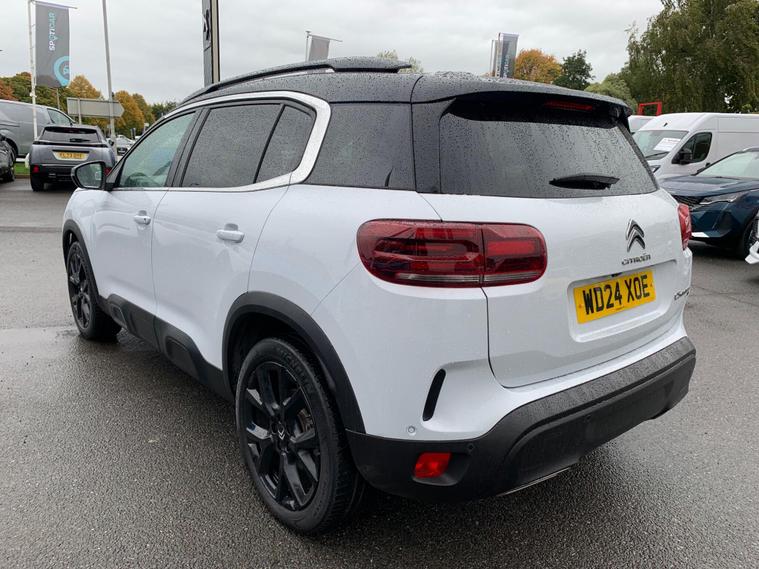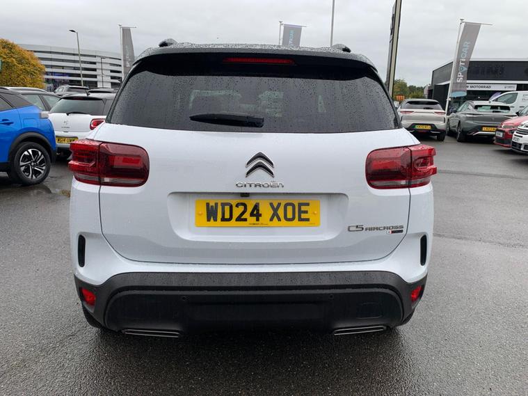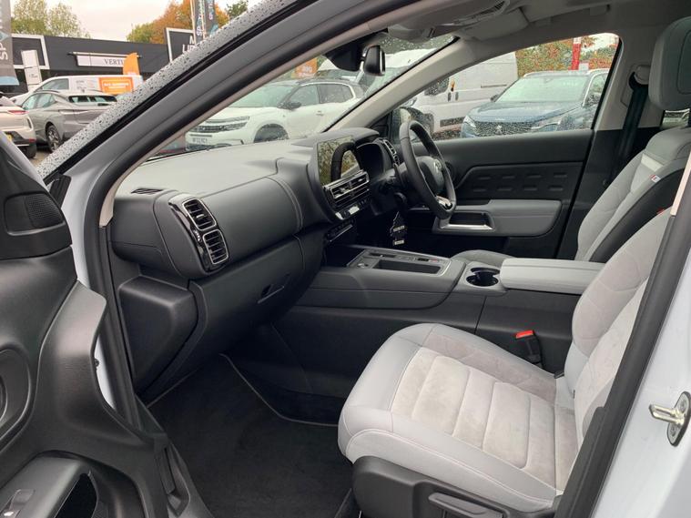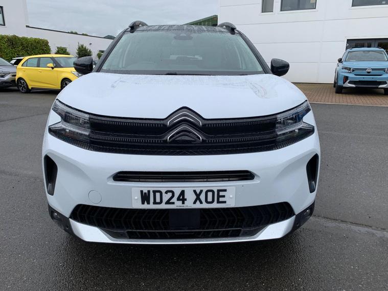 Discover the 2024 Citroen C5 Aircross e-series, a sophisticated and practical choice for your next vehicle. This Euro 6 compliant model boasts a 1.2L Petrol Hybrid engine, offering an impressive fuel economy of 53 mpg. Inside, you'll find the intuitive Citroen Connect Play system, seamlessly integrating with both Android Auto and Apple CarPlay for effortless connectivity. The acoustic laminated windscreen, complete with rain and brightness sensors, ensures optimal visibility, while the automatic headlights provide added convenience.Experience enhanced safety and comfort with features like electric, heated, and folding door mirrors that include LED approach lighting and blind spot monitoring indicators. The City Camera Pack, with front and rear parking sensors and a rear camera, makes manoeuvring a breeze. Enjoy the open air with the opening panoramic roof and its electric sunblind. Furthermore, the C5 Aircross offers generous boot space, making it ideal for all your needs, demonstrating its superior practicality compared to other vehicles in its class..