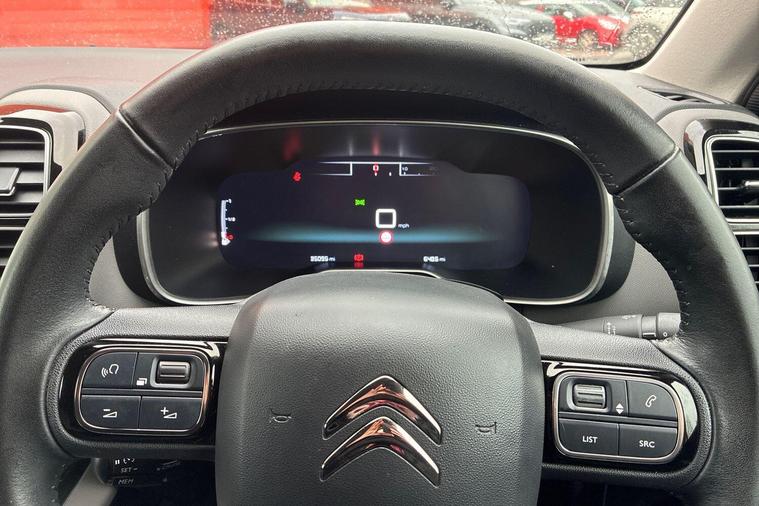 This 2020 Citroen C5 Aircross Flair offers exceptional value with its low mileage of just 35095 miles and a full service history, ensuring peace of mind with 12 months warranty and Citroen manufacturer approval. This stylish SUV is equipped with a 1.2 litre Euro 6 petrol engine, providing an impressive fuel economy of 44 mpg. Notable features include keyless entry and start for effortless access, rear parking sensors and a park city camera pack with front sensors and a rear camera to aid manoeuvring. Inside, you'll appreciate the automatic dual zone climate control for personalised comfort and the Mirror Screen system, compatible with both Apple CarPlay and Android Auto, keeping you connected on the go.The Citroen C5 Aircross Flair stands out from similar vehicles thanks to its excellent fuel economy of 44 mpg, which helps to keep running costs down. It also benefits from a low insurance group, making it an economical choice for many drivers. Furthermore, this model boasts a large boot space, offering ample room for shopping, luggage, or sports equipment, making it a practical and versatile option for families and individuals alike..