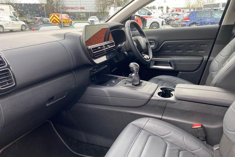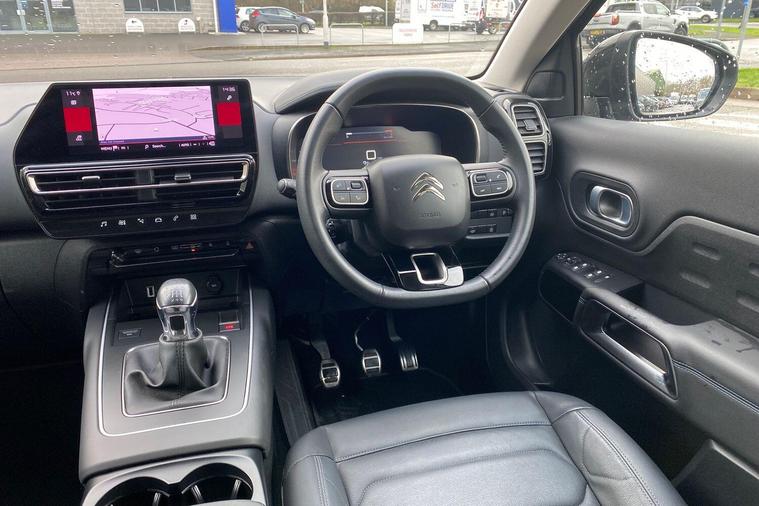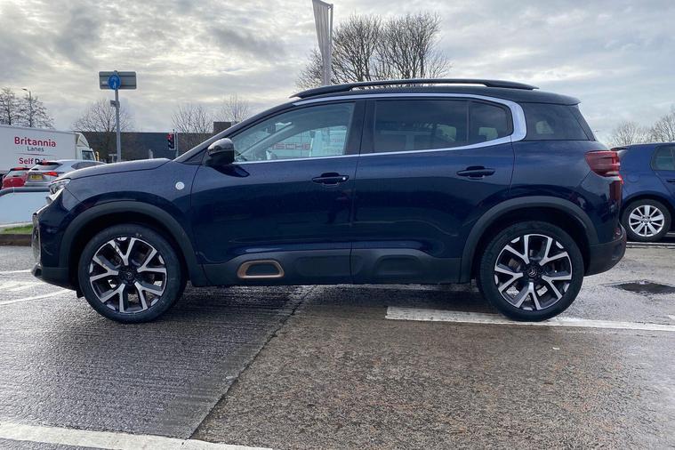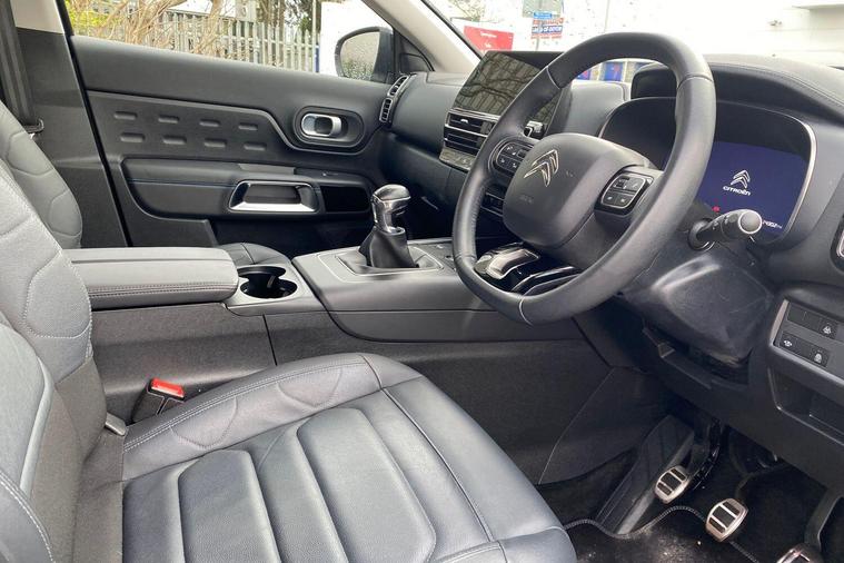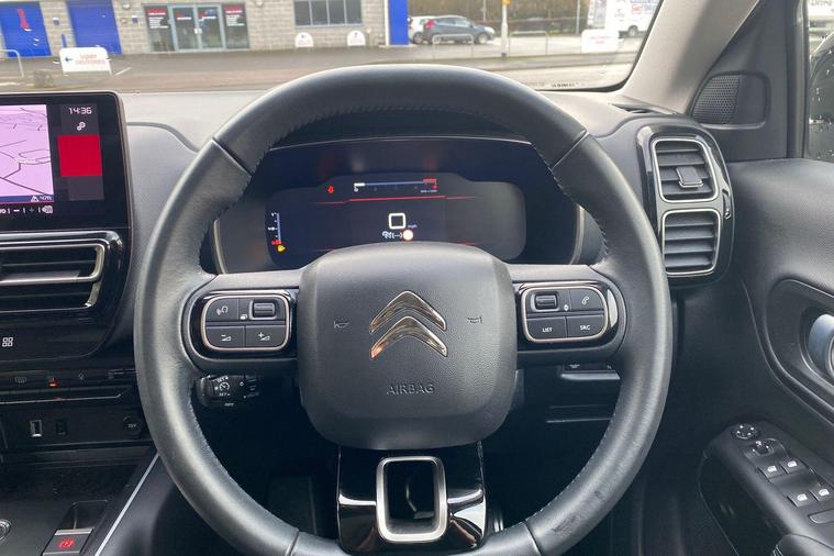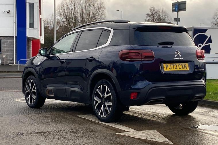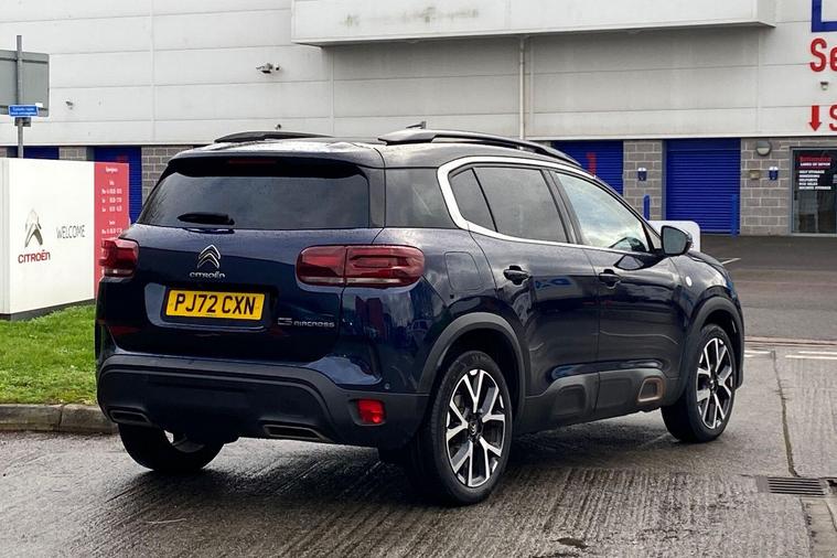 This 2022 Citroen C5 Aircross C Series Edition offers exceptional provenance with only one owner and a full service history, all backed by a 12 month warranty and Citroen manufacturer approval. This Euro 6 compliant 1.2 litre petrol model boasts impressively low mileage for its age at just 22469 miles. Inside, you'll find a host of convenient features including the Drive Assist Pack with Blind Spot Assistance and Adaptive Cruise Control, alongside the City Camera Pack offering front and rear parking sensors and a rear camera. Enjoy the open air with the opening panoramic roof and electric sunblind, and stay connected with wireless smartphone charging. Automatic headlights with welcome and goodbye lighting add a touch of sophistication.This C5 Aircross C Series Edition stands out with its excellent fuel economy, achieving a highlight of 49 miles per gallon, and its low CO2 emissions, making it a more economical choice compared to similar vehicles. The generous boot space ensures practicality for all your needs, further enhancing its appeal as a well rounded and desirable SUV..