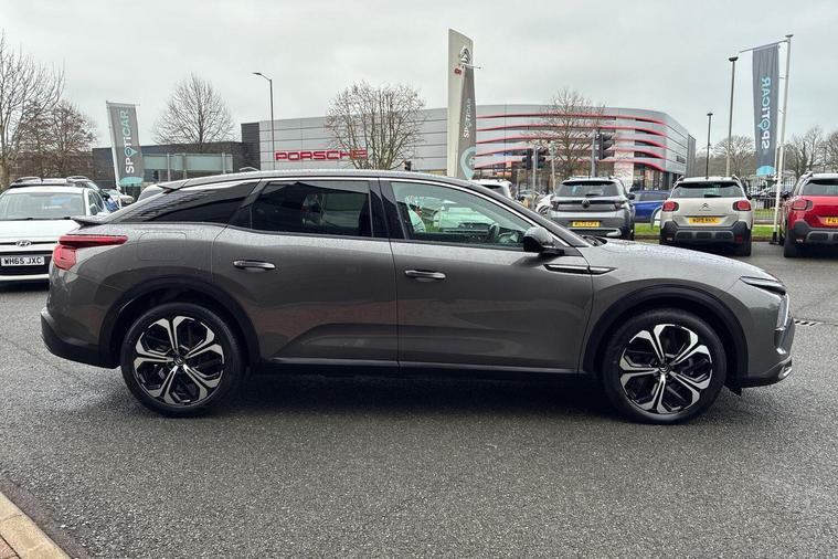This 2024 Citroen C5 X Shine Plus presents an exceptional opportunity with its remarkably low mileage of just 1035 miles, offering near new condition. This Euro 6 compliant, 1.6L petrol plug in hybrid model boasts a full service history and comes with the reassurance of 12 months warranty and Citroen manufacturer approval. Its advanced features include electronically heated and folding door mirrors with integrated LED indicators and approach lighting, extended blind spot detection, and Visiopark 360 degrees for unparalleled parking assistance and visibility. Inside, the electric driver's seat offers memorisation settings for personalised comfort, while automatically illuminating LED headlamps with high beam assist ensure optimal night time driving. The multifunction heated leather steering wheel, complete with paddle shifters, puts control of driving assistance and infotainment at your fingertips, complemented by inductive wireless smartphone charging.The C5 X Shine Plus excels with its spacious boot, providing ample room for all your needs. The inclusion of features like the electric driver's seat with memory settings and the 360 degree camera system clearly demonstrate a superior level of comfort and convenience compared to other vehicles in its class. The automatic high beam assist and extended blind spot detection further enhance safety and ease of driving, making this Citroen C5 X a truly distinguished choice..