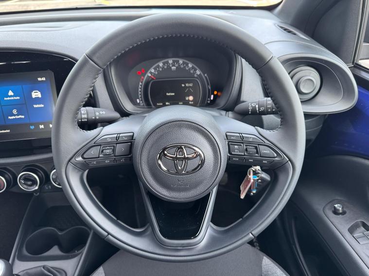 This 2025 Toyota Aygo X VVT-i Pure presents an exceptional opportunity with an incredibly low mileage of just 343 miles, meaning it's barely run in. This one owner, Euro 6 compliant vehicle boasts a nimble 1.0L petrol engine and comes equipped with the advanced Toyota Safety Sense suite, which includes adaptive cruise control with convenient steering wheel controls. You'll also benefit from automatic headlights for effortless night driving and a reversing camera to assist with parking. For seamless connectivity, it features smartphone integration with both Apple CarPlay and Android Auto, ensuring your digital life stays with you on every journey.The Aygo X Pure is designed to be economical and efficient, highlighted by its impressive fuel economy of 59 miles per gallon. This, combined with its low CO2 emissions and low insurance group rating, makes it a remarkably cost effective choice compared to other vehicles in its class. This combination of advanced safety features, modern technology, and outstanding running costs makes this Aygo X a smart and practical choice for any driver..