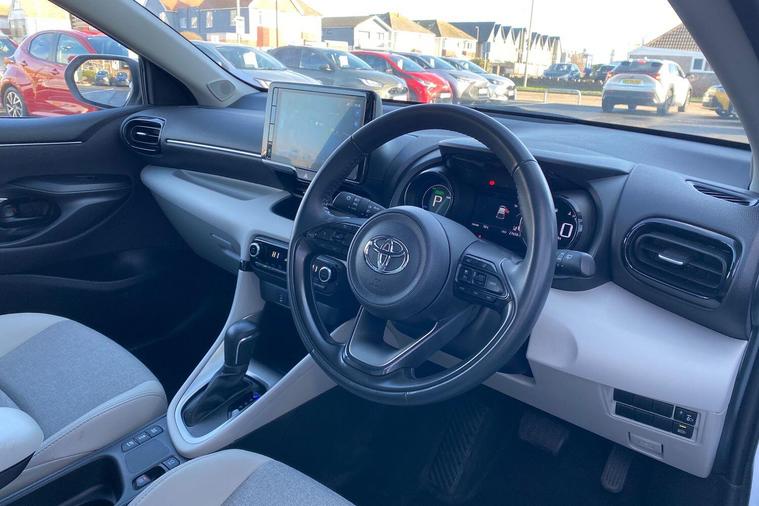 This 2023 Toyota Yaris VVT-h Excel is a superb example, boasting a full dealership service history and having had only one owner from new. This particular model, the Excel trim, is equipped with a responsive 1.5L Petrol Hybrid engine and meets Euro 6 emission standards. You can drive with confidence knowing it comes with a 12 month warranty and a fresh 12 month MOT provided on purchase. Notable features include advanced LED headlights and a front light guide, smart entry for effortless access, and an integrated navigation system compatible with both Android Auto and Apple CarPlay. For enhanced driving comfort and safety, it also includes Toyota Safety Sense 2, which features adaptive cruise control.Experience exceptional efficiency with this Yaris, achieving an impressive fuel economy of 66 mpg, a highlight that sets it apart from many other vehicles in its class. Its low CO2 emissions further contribute to its economical and environmentally conscious performance. This well maintained and feature rich Toyota Yaris VVT-h Excel offers a compelling blend of modern technology, practicality, and outstanding value..