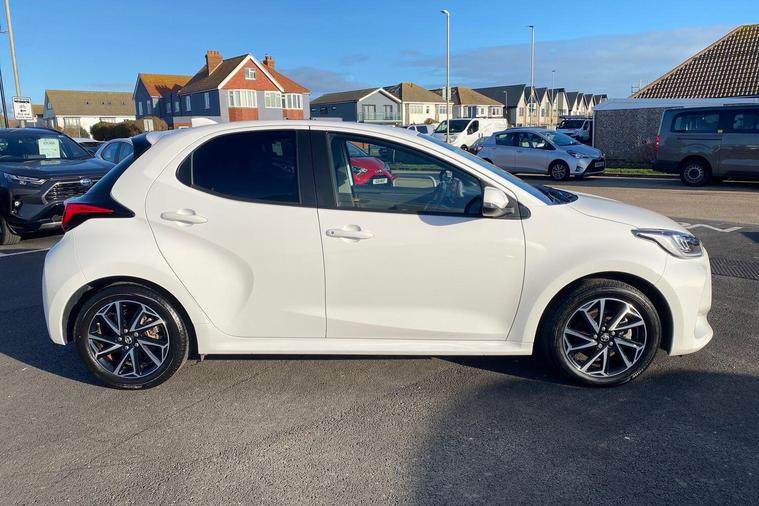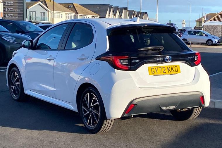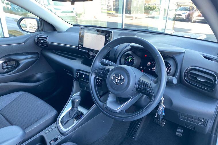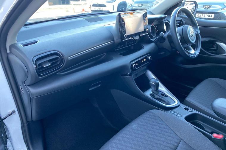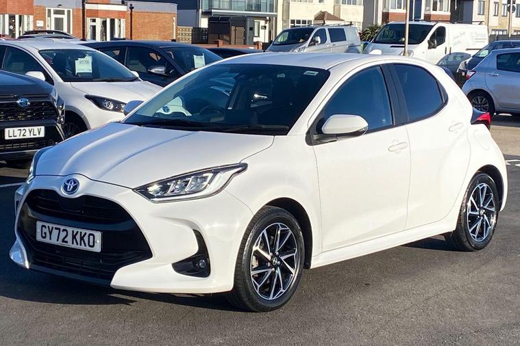 This 2022 Toyota Yaris VVT-h Design is a truly exceptional find, boasting an incredibly low mileage of just 7377 miles and having had only one owner from new. This Euro 6 compliant, 1.5L petrol hybrid is presented in Design trim and comes with the reassurance of a 12 month warranty and a full service history, having been manufacturer approved by Toyota. You can drive with confidence thanks to features like automatic and LED headlights, Bluetooth connectivity for seamless calls and music, and a reversing camera to aid parking. The advanced Toyota Safety Sense 2 suite includes adaptive cruise control, further enhancing your driving experience.This Yaris truly shines with its remarkable fuel economy, achieving an outstanding 69 miles per gallon, which is significantly better than many other vehicles in its class. Its low CO2 emissions also contribute to its appeal, making it an economical and environmentally conscious choice. This combination of low running costs, advanced technology, and Toyota's renowned reliability makes this Yaris a standout option for anyone seeking a high quality, efficient, and well maintained compact car..