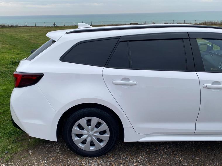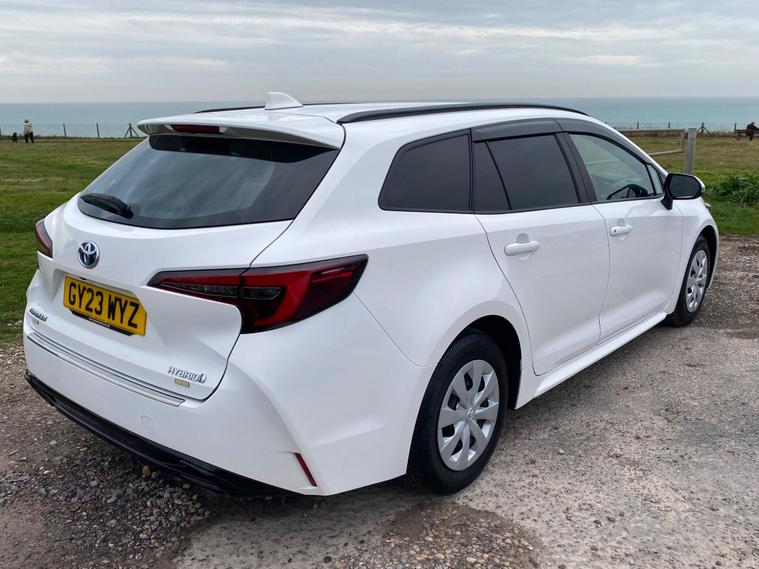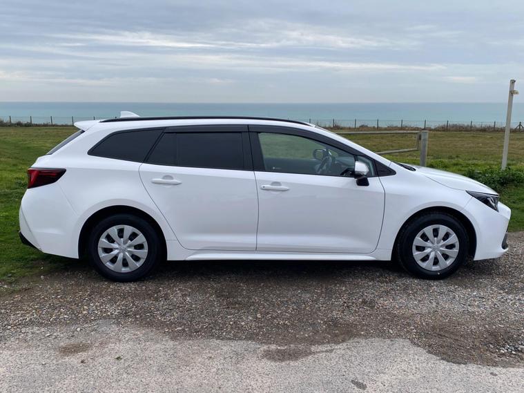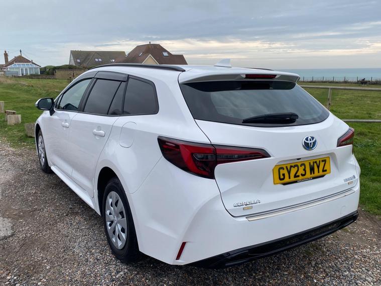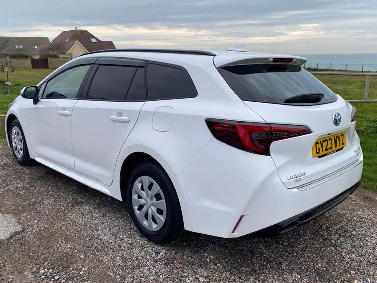 This 2023 Toyota Corolla Commercial Van boasts a full dealership service history, ensuring its excellent provenance. This one owner vehicle has covered just 20, 403 miles and is Toyota manufacturer approved. It features a 1.8 litre VVT-h petrol hybrid engine with an automatic CVT gearbox, meeting Euro 6 emissions standards. Notable features include the Parking Pack with front and rear sensors, a reversing camera, heated front seats for driver and passenger comfort, and Adaptive Cruise Control as part of the comprehensive Toyota Safety Sense 3 suite.The 1.8 litre hybrid engine delivers a healthy 138 bhp, offering a refined driving experience. With a substantial cargo volume of 1606 litres, this Corolla is exceptionally practical for business needs. The low mileage for its age, combined with the full dealership service history and manufacturer approval, clearly sets this vehicle apart from others on the market, indicating a well maintained and cared for example..