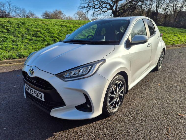 Boasting exceptionally low mileage for its age, this 2023 Toyota Yaris VVT-h Design is a superb example of efficient motoring. With only 7586 miles on the clock and a recent service completed on 16th April 2025 at 3996 miles, this Euro 6 compliant Yaris offers peace of mind with a 12 month warranty and 12 months MOT provided on purchase. Its 1.5L Petrol Hybrid engine is paired with the Design trim, offering a refined driving experience.This Yaris excels with a remarkable fuel economy of 69 mpg, significantly better than many similar vehicles, and also boasts low CO2 emissions. Stay connected and entertained with smartphone integration, including Apple CarPlay and Android Auto, alongside Bluetooth connectivity. For added convenience and safety, it features adaptive cruise control and automatic air conditioning, ensuring a comfortable journey in all conditions. The distinctive LED headlights provide excellent visibility..