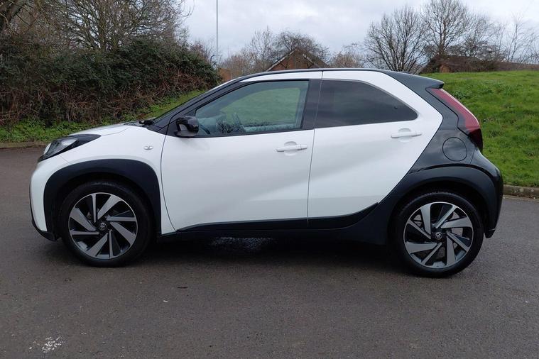 This 2024 Toyota Aygo X VVT-i Edge presents an exceptional ownership proposition with its remarkably low mileage of just 8561 miles, a testament to its careful use by its single owner. This Euro 6 compliant, 1.0L petrol model is presented in Edge trim and benefits from a full dealership service history, ensuring its provenance is impeccable. As a Toyota manufacturer approved vehicle, it comes with the added reassurance of a 12 month warranty. Inside, you'll find a host of convenient features designed to enhance your driving experience, including Intelligent Adaptive Cruise Control with a switch on the steering wheel, Bluetooth connectivity for seamless phone integration, and a reversing camera to aid with parking. The Aygo X also boasts automatic headlights and automatic air conditioning, ensuring comfort and ease in all conditions.The highlights of this Toyota Aygo X truly set it apart from other vehicles in its class. Its impressive fuel economy of 59 mpg means you can enjoy longer journeys with fewer stops for fuel, making it an economical choice. Furthermore, its low insurance group rating indicates that running costs will be kept to a minimum, a significant advantage for many drivers. The low CO2 emissions also contribute to its environmental credentials and lower tax obligations. These combined factors demonstrate that this Aygo X offers a superior combination of efficiency, affordability, and modern convenience..