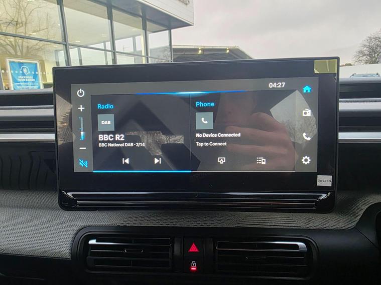This 2025 Citroen C3 PLUS is a superb example, having had only one owner from new. This stylish hatchback features a 1.2 litre petrol hybrid engine, meeting Euro 6 emissions standards. Inside, you'll find a practical High Console complete with an armrest and closed storage, alongside a modern eToggle gear selector. For added convenience and safety, it includes an Approaching Vehicle Alerting System (AVAS) and an Electric Parking Brake. A USB C fast charge port is also conveniently located on the high console.The Citroen C3 PLUS offers an impressive fuel economy of 59 miles per gallon, demonstrating its efficiency compared to other vehicles in its class. This, combined with its thoughtful features and single owner provenance, makes it a compelling choice for those seeking a well maintained and economical compact car..