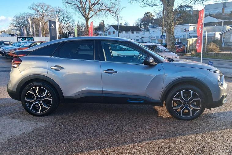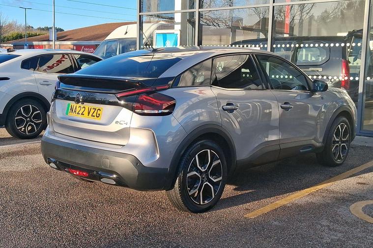 This 2022 Citroen e C4 Shine Plus is a remarkably low mileage example for its age, having covered just 17000 miles. As a fully electric vehicle, it offers a compelling blend of modern technology and practicality. With a 50 kWh battery, it provides a maximum range of 219 miles when new, making it suitable for both daily commutes and longer journeys. Charging is convenient, with a full charge at home on a 7kW charger taking approximately 7 hours and 30 minutes, while rapid public charging can replenish the battery from empty to 80% in as little as 30 minutes. This Shine Plus variant comes equipped with a host of desirable features, including wireless smartphone charging, keyless entry and start, and adaptive cruise control as part of the Highway Driver Assist system. You'll also find automatic dual zone air conditioning for personalised comfort and active blind spot detection for enhanced safety.The generous boot space in this Citroen e C4 Shine Plus is a standout feature, offering ample room for shopping, luggage, or sports equipment. The combination of its electric powertrain, impressive range, and rapid charging capabilities positions it favourably against many other vehicles in its class. The inclusion of advanced driver assistance systems like Highway Driver Assist and Active Blind Spot Detection further elevates its appeal, providing a safer and more relaxed driving experience. This well appointed electric hatchback is ready to offer efficient and comfortable motoring..