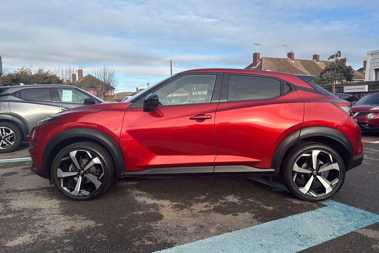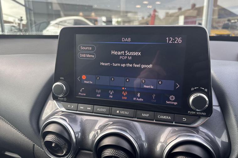 This 2022 Nissan Juke DIG-T Tekna is a Nissan manufacturer approved vehicle with a full service history and a 12 month warranty, offering excellent peace of mind. This stylish Tekna trim Juke is powered by an efficient 1.0L Petrol engine, meeting Euro 6 emissions standards. It boasts an impressively low mileage of just 18, 573 miles for its age. Convenience is key with this model, featuring Intelligent Key and Start Push Button with Walk Away Lock and Approach Unlock Functions, providing seamless keyless entry.Enjoy seamless connectivity with Apple CarPlay and Google Android Auto, allowing you to easily access your favourite apps and navigation on the go. This Juke achieves an impressive fuel economy of 46 mpg, and its low CO2 emissions highlight its efficiency, making it a more economical choice compared to many other vehicles in its class..