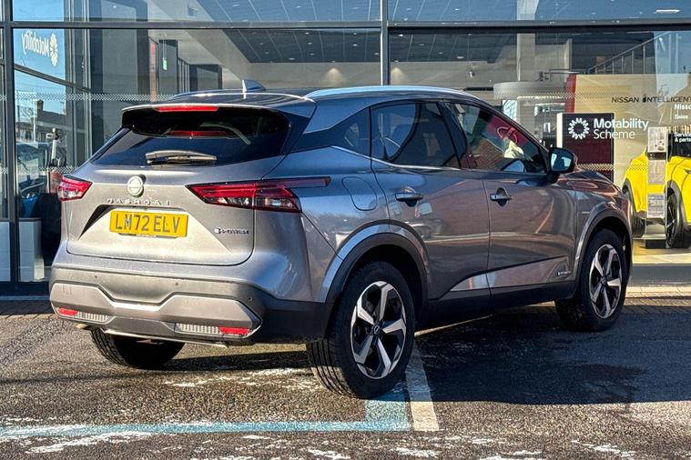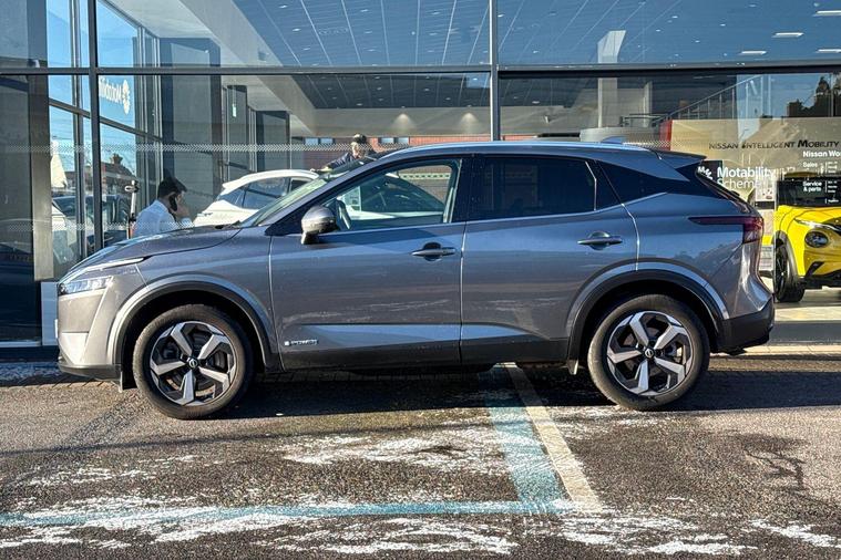This 2022 Nissan Qashqai h e-POWER N-Connecta offers an exceptional ownership proposition with its remarkably low mileage of just 4938 miles. This Euro 6 compliant 1.5 litre petrol hybrid is presented in N-Connecta trim and benefits from a full service history, ensuring it is Nissan manufacturer approved. You can drive with confidence thanks to features like Blind Spot Warning with Intelligent Blind Spot Intervention, a Rear View Camera, and the Intelligent Around View Monitor for comprehensive parking assistance. Wireless Apple CarPlay is also included, keeping you connected on the go.Experience impressive performance and efficiency with this Qashqai, boasting a swift 0-62mph acceleration of 7.9 seconds. Its fuel economy is a standout highlight, achieving an excellent 54 miles per gallon, and it also offers low CO2 emissions, making it an environmentally conscious choice. Furthermore, the generous boot space provides ample room for all your luggage and shopping needs, demonstrating how this vehicle excels in practicality compared to similar models..