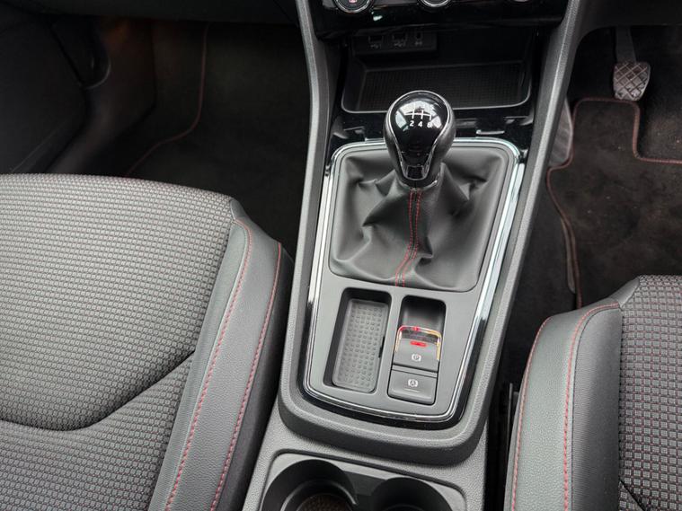 - Steering Wheel - Flat-Bottomed Perforated Leather with Red Stitching and FR Logo