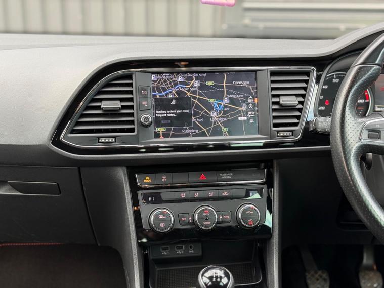 Platinum Automotive are proud to present a stunning example of this well maintained Seat Leon 1.4 EcoTSI FR Technology 5 Door, Which is ULEZ compliant that has just come into stock. Full service history (7 Stamps), Wheels Refurbished High Gloss Black, Rosso Red Calipers, Air Conditioning, Parking Sensors, Multifunctional Touchscreen Media System, Apple/Android Car Play, Navigation System, 3.5in Drivers Display, Hill Hold, Dual Zone Climate Control, Bluetooth, Fog lights, USB, DAB, Cruise Control, Low Insurance Group, Gear Shift Indicator, Electric folding heated wing mirrors, Tyre Pressure Monitor, Mot and service has been completed. This vehicle is clean throughout and drives faultlessly. All vehicles from Platinum Automotive group are prepared to a high standard and undergo HPI checks along with mileage verification. Our vehicles are sold with comprehensive 6 month's warranty which is included in the sale price. We also provide complimentary 6 month's breakdown cover. Warranty and Breakdown can be extended. Reserve this vehicle today £99 Fully Refundable deposit. Nationwide Delivery Available, Finance Available..