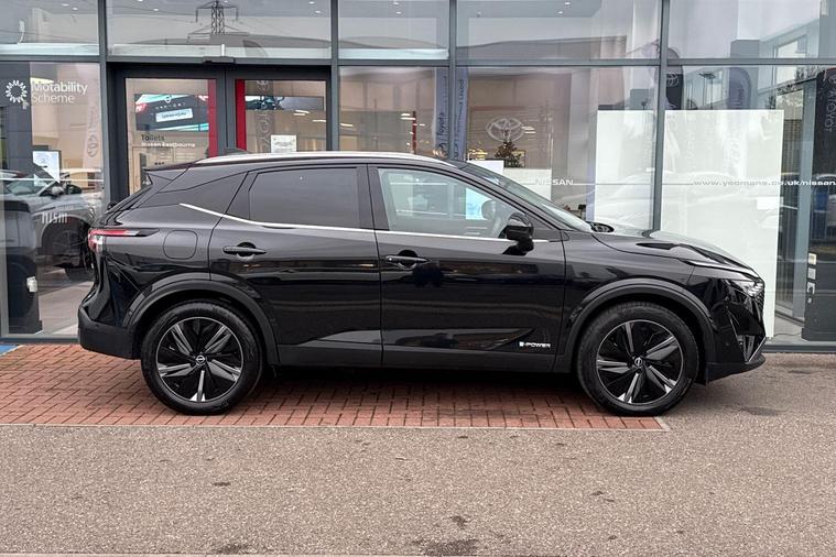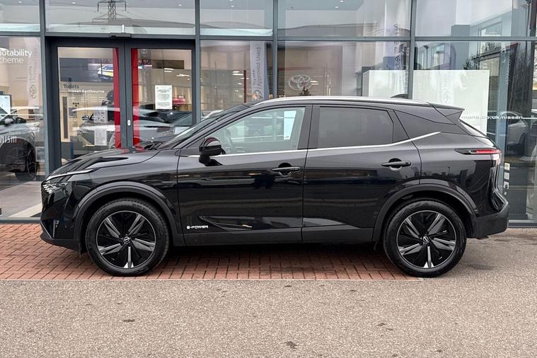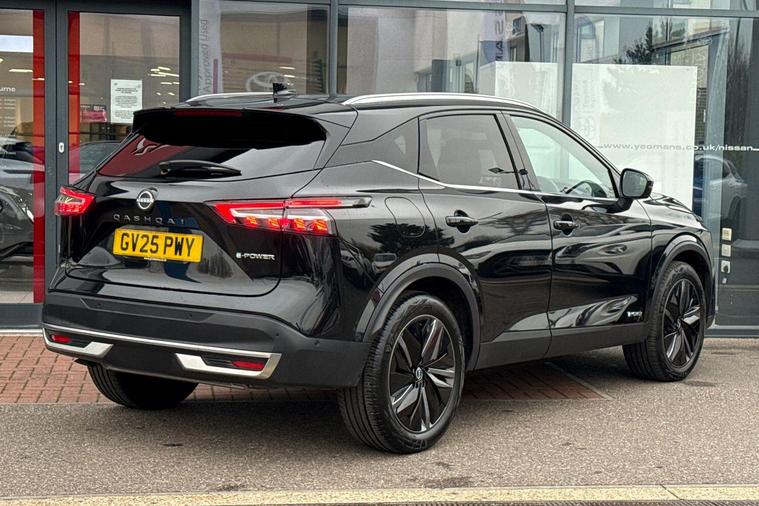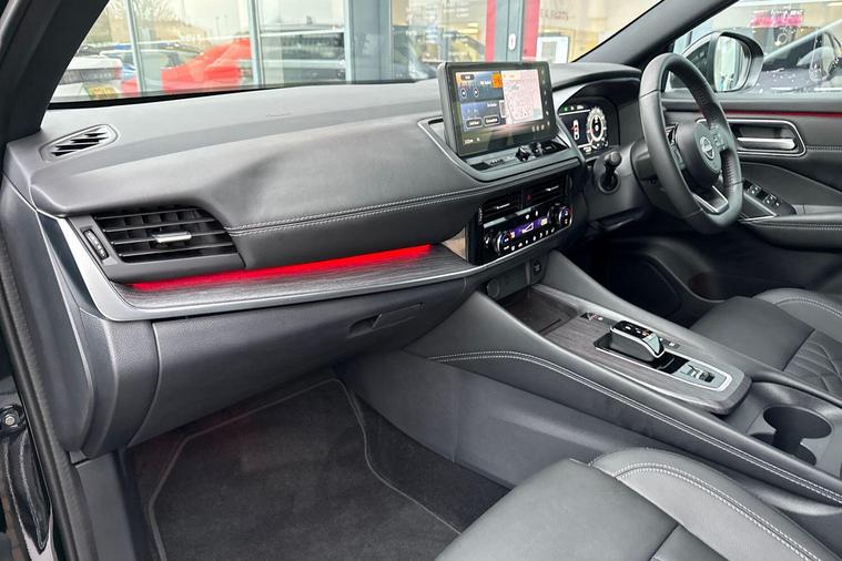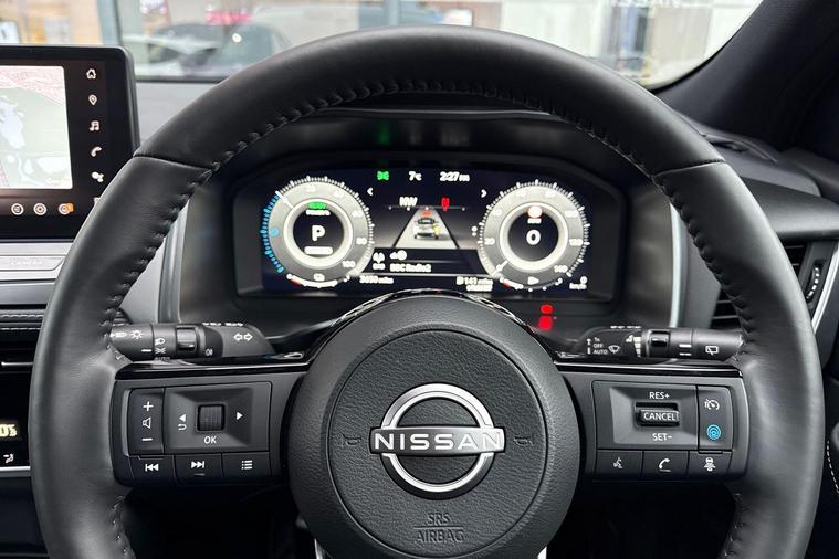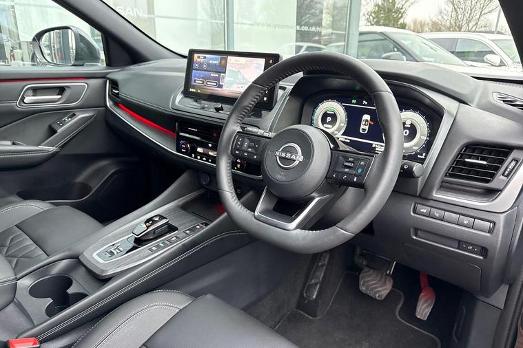 With only one owner and just 3650 miles on the clock, this 2025 Nissan Qashqai h e-POWER Tekna represents exceptional provenance. As a Nissan manufacturer approved vehicle, it offers peace of mind, further enhanced by an MOT valid until June 2028. This Euro 6 compliant model features a 1.5L petrol hybrid engine, combining efficiency with performance. Inside, you'll find a host of notable features designed for comfort and convenience, including a heated steering wheel and heated front seats, a wireless charging pad for your devices, and advanced safety systems like Intelligent Blind Spot Intervention and Blind Spot Warning.The Qashqai Tekna stands out with its impressive fuel economy, achieving a highlight of 53 mpg, which is better than many similar vehicles. Its low CO2 emissions also contribute to its appeal. For practicality, it boasts a large boot space, perfect for families or those with active lifestyles. Performance is also a strong point, with acceleration from 0-62mph achieved in a swift 7.9 seconds, demonstrating the responsive nature of its hybrid powertrain..