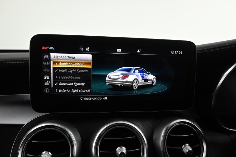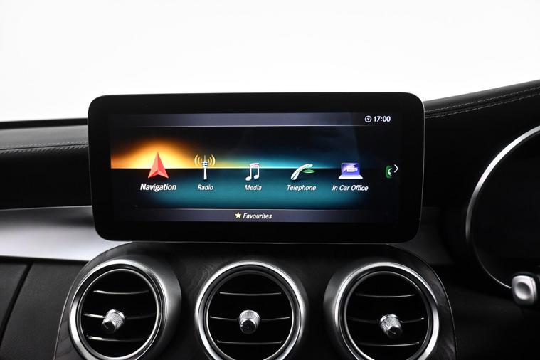 WE ARE PLEASED TO PRESENT THIS STUNNING C CLASS, IN GREAT CONDITION, WITH FULL MERCEDES SERVICE HISTORY, ONE FORMER KEEPER, TWO KEYS, LOW MILEAGE, LONG MOT JAN 2027, PRIVACY GLASS, AMBIENT LIGHTNING, REAR SPOILER, 19''INCH BLACK MULTI SPOKE ALLOYS, LEATHER TRIM, HEATED FRONT SEATS, CLIMATE CONTROL, PARKING SENSORS WITH CAMERA, NAVIGATION, MEDIA, WARRANTY, PX WELCOME, PLEASE CALL FOR MORE INFO.