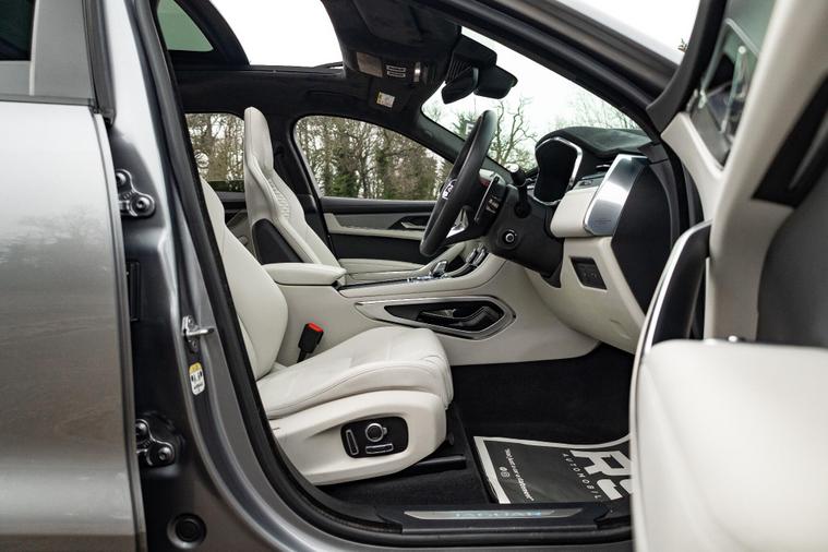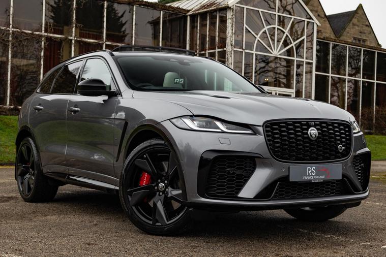 THIS 2023 JAGUAR F-PACE P550 V8 SVR PRESENTS A REMARKABLE OPPORTUNITY WITH ITS EXCEPTIONALLY LOW MILEAGE OF JUST 19, 000 MILES, COUPLED WITH A CLEAR VEHICLE HISTORY CHECK. THIS FOUR WHEEL DRIVE, EURO 6 COMPLIANT MODEL BOASTS A POWERFUL 5.0 LITRE PETROL ENGINE, DELIVERING EXHILARATING PERFORMANCE WITH A 0-60MPH TIME OF ONLY 3.8 SECONDS. THE SVR TRIM ENHANCES ITS SPORTING CREDENTIALS, AND IT COMES EQUIPPED WITH DESIRABLE FEATURES SUCH AS THE TECHNOLOGY PACK, WHICH INCLUDES A HEAD UP DISPLAY AND WIRELESS PHONE CHARGING, ALONGSIDE FOUR ZONE CLIMATE CONTROL FOR ULTIMATE PASSENGER COMFORT. FURTHER ENHANCING ITS APPEAL ARE THE STRIKING 22 INCH FORGED ALLOY WHEELS IN SATIN TECHNICAL GREY WITH A CONTRAST DIAMOND TURNED FINISH, PIXEL LED HEADLIGHTS WITH SIGNATURE DAYTIME RUNNING LIGHTS, AND PARK ASSIST FOR EFFORTLESS MANOEUVRING.THE GENEROUS BOOT SPACE ENSURES PRACTICALITY FOR EVERYDAY NEEDS AND LONGER JOURNEYS, WHILE THE IMPRESSIVE TOWING WEIGHT OF 2400 KG OFFERS VERSATILITY FOR CARRYING EXTRA LOADS. THESE HIGHLIGHTS, INCLUDING THE RAPID ACCELERATION AND ADVANCED TECHNOLOGY, DEMONSTRATE HOW THIS JAGUAR F-PACE SVR STANDS OUT FROM OTHER VEHICLES IN ITS CLASS, OFFERING A COMPELLING BLEND OF PERFORMANCE, LUXURY, AND CAPABILITY..