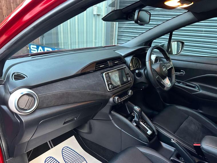 Nissan Micra1.0 N-Sport IG-T CVT 5dr Euro 6 ULEZ FREE. Finished in Metallic Red with black Alcantara interior and white contrast stitching/ piping. 17'' gloss black alloy wheels, 5'' coloured TFT screen, DAB radio, Bluetooth, Apple CarPlay/ Android Auto, crash warning, cruise control, lane departure warning, rear view camera, rear parking sensors, Exterior Pack+ (Black& Carbon look features), electric front windows, rear privacy glass, automatic headlights, LED DRL's, high beam assist, air conditioning, rain sensing windscreen wipers, speed limiter.Here at Saracen Motor Group we have been awarded AA Platinum dealership recognition along with being nominated for best customer service by Autotrader for 2021, 2022, 2023, 2024 & 2025. We are a 5-star dealership with over 600 5-star reviews across all internet platforms including Autotrader and have been regarded as one of the best dealerships to buy from in the UK.Our preparation team inspects each vehicle to the highest level possible for its age and mileage. You can rest assured your next car has been cared for to the highest standard. Service history, V5 and the HPI certificate will all be present on viewing and collection. With our location based in Battlesbridge, Essex you can enjoy a haggle-free buying experience where you can drive away the same day if prior arranged, additional fees apply please see our website for details..