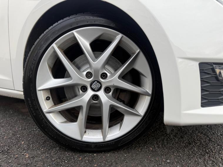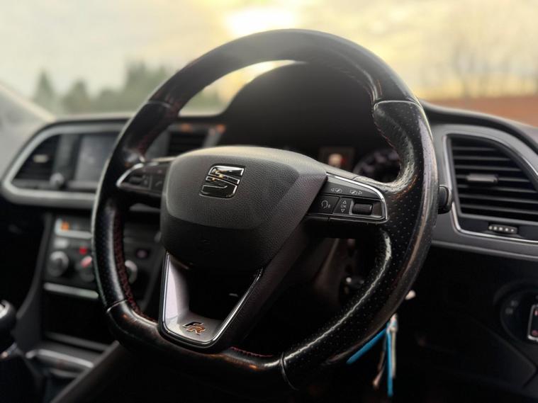 - Steering Wheel - Flat-Bottomed Perforated Leather with Red Stitching and FR Logo