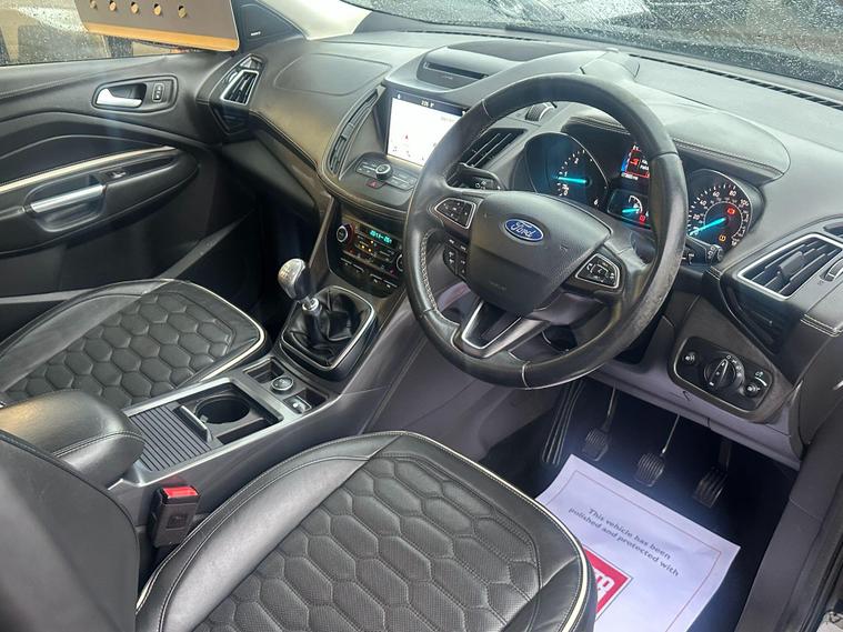 Boasting a full dealership service history with its last service completed in July 2025 at 65, 834 miles, this 2019 Ford Kuga TDCi Vignale offers excellent provenance. This Euro 6 compliant 2.0L diesel model comes with an MOT valid until July 2026 and a 3 month warranty for your peace of mind. Key features include the Premium Ford DAB Navigation System with Ford SYNC3, Bluetooth, and a rear camera, alongside the Ford Key Free System with a hands-free power tailgate for effortless access.The Vignale trim level enhances your driving experience with a heated front seat cushion and back, ensuring comfort in all conditions. Parking is made simple with Enhanced Active Park Assist, incorporating front and rear parking sensors, and the convenience of a rear parking camera. These thoughtful additions demonstrate how this Ford Kuga provides a superior ownership experience compared to other vehicles in its class.This vehicle boasts full main agent history with services carried out at 5367 miles, 10861 miles, 17500 miles, 33563 miles, 49646 miles, 65834 miles and will be freshly serviced at point of sale.It is presented in excellent condition throughout and drives superb. Viewing, test drive and inspection welcome.Finance available..
