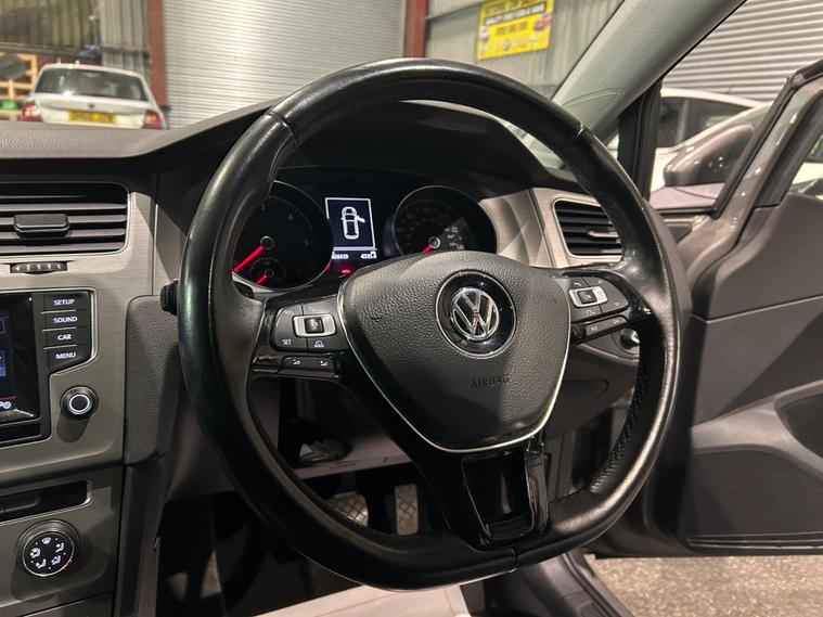 This Volkswagen Golf TDI SE from 2014 presents a superb ownership history, having had only two previous owners. It features a 1.6 litre diesel engine and comes in the SE trim. This model is equipped with a desirable panoramic sunroof that can be opened, along with Lane Assist to help keep you on track. For convenience, it includes automatic dusk sensing headlights, manual air conditioning, and Adaptive Cruise Control which automatically adjusts your speed to maintain a safe distance from the vehicle ahead.This Golf TDI SE offers excellent value, with a remarkably low insurance group making it an economical choice. You can expect an impressive fuel economy of up to 72 miles per gallon, and its low CO2 emissions are also a significant benefit. Furthermore, the generous boot space provides ample room for luggage or shopping, demonstrating how this vehicle is a practical and efficient option compared to many others in its class..