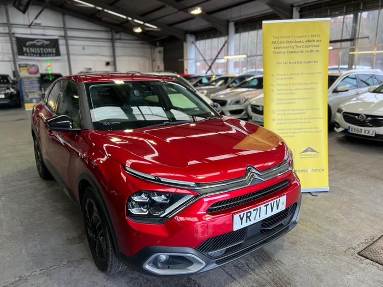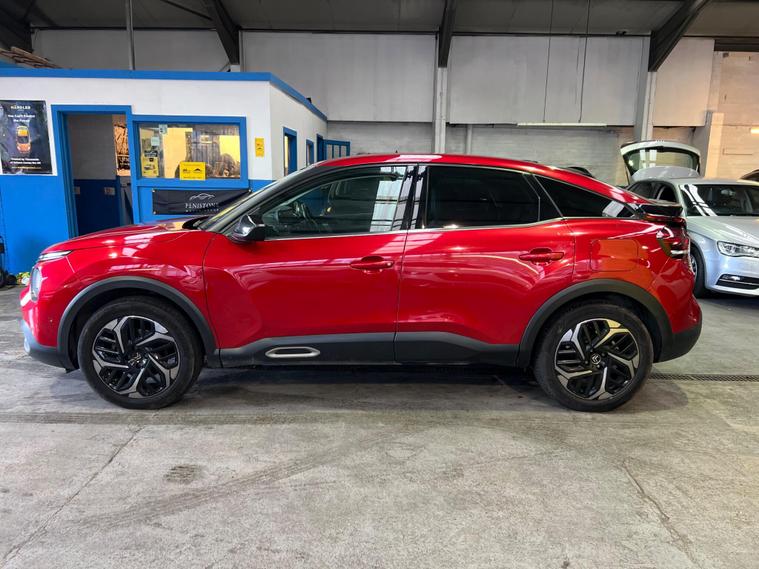 This 2021 Citroen C4 Shine is a superb example, having had only one owner from new. It features a responsive 1.2 litre petrol engine, meeting Euro 6 emissions standards, and offers a smooth driving experience. Keyless entry and start provide effortless access, while the Top Rear Vision reversing camera and Visio Park system make parking simple and stress free. Automatic headlights with high beam assist adapt to changing light conditions, and adaptive cruise control with a speed limiter enhances comfort on longer journeys.The C4 Shine boasts impressive acceleration, reaching 0 to 62 miles per hour in just 9.4 seconds, demonstrating its capable performance. This particular model also benefits from a large boot space, offering ample room for shopping, luggage, or equipment. These features combined, including the advanced driver assistance systems and strong performance figures, highlight how this Citroen C4 offers a refined and practical motoring solution..