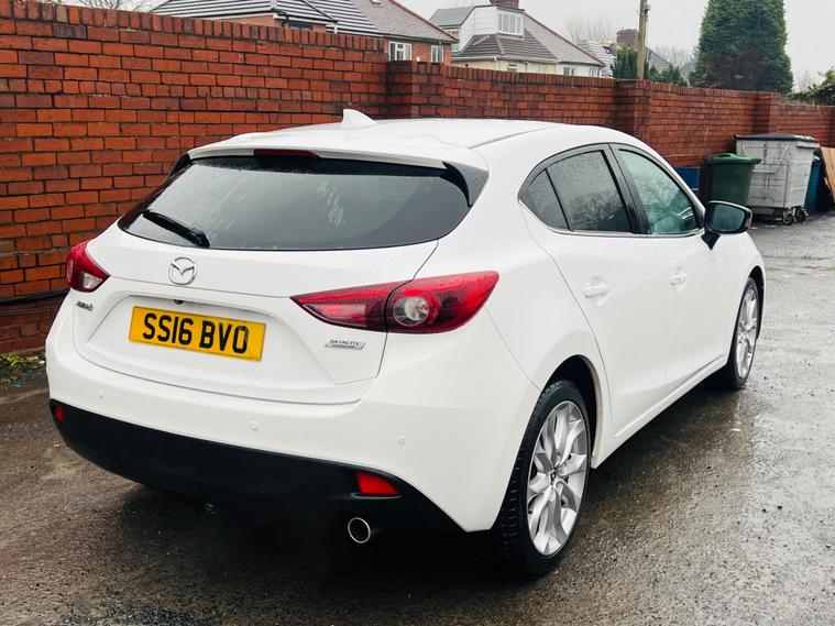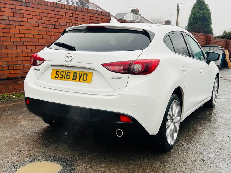 REVERSE CAMERA HEATED SEAT PARKING SENSOR EURO 6 CAR MOT 11/12./2026 /JUST ARRIVED PART EXCHANGE AND DELIVER AVAILABLE LOW RATE FINANCE AVAILABLE 0 DEPOSIT FINANCE AVAILABLE This 2016 Mazda3 SKYACTIV-D Sport Nav presents an exceptional example with remarkably low mileage for its age, having covered just 70433 miles. This Euro 6 compliant 1.5 litre diesel model, in its Sport Nav trim, offers a refined driving experience. It comes equipped with desirable features such as front and rear parking sensors to aid manoeuvring, and Bi-Xenon headlights for superior visibility. Inside, you will appreciate the comfort of heated front seats and the immersive sound quality delivered by the premium BOSE Centrepoint Surround System with its nine speakers.The Mazda3 SKYACTIV-D Sport Nav stands out with its impressive fuel economy, achieving a remarkable 74 miles per gallon, which indicates it is more economical than many similar vehicles. Furthermore, its low CO2 emissions highlight its environmental consideration. Practicality is also a strong point, with generous boot space making it ideal for carrying luggage or shopping. These combined attributes make this Mazda3 a compelling choice for those seeking efficiency, comfort, and practicality..