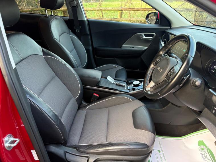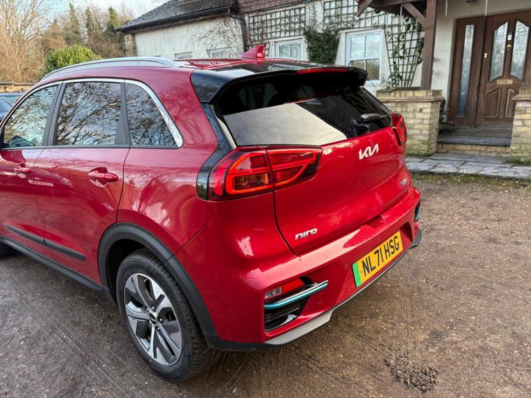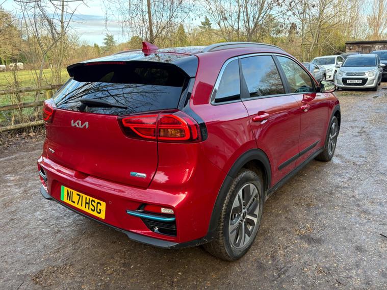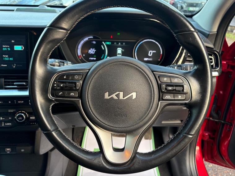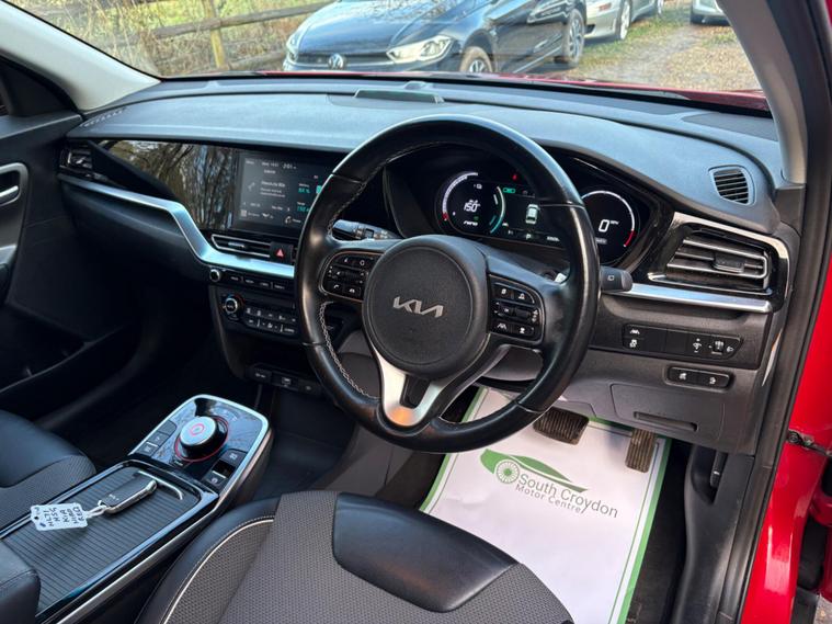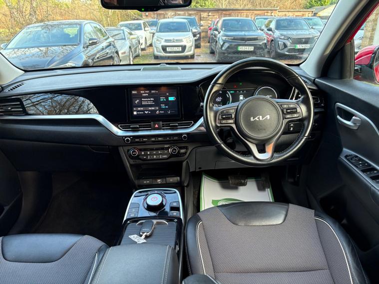 This 2021 Kia Niro 2 is a superb example, having been cherished by only one owner since new. This electric model boasts a 43 kWh battery, offering a maximum range of 180 miles when fully charged. For convenient home charging, a full charge from empty takes approximately 6 hours and 10 minutes using a 7kW charger. When you need to charge on the go, the fastest public charging option can take the battery from empty to 80% in just 54 minutes. Inside, you'll appreciate the stylish High Gloss Black Centre Fascia Trim, High Gloss Black Lower Console Trim, and Satin Finish Interior Door Handles, complemented by Chrome Coated Exterior Door Handles and High Gloss Black Door Insert Trim.The Kia Niro 2 stands out with its impressive electric capabilities and thoughtful interior design. The combination of its substantial battery range and efficient charging times makes it a practical choice for both daily commutes and longer journeys. The attention to detail in the interior trim, featuring high gloss black and satin finishes, creates a refined and modern cabin experience that sets it apart from other vehicles in its class. This well maintained, single owner vehicle offers a compelling blend of eco friendly motoring and sophisticated comfort..