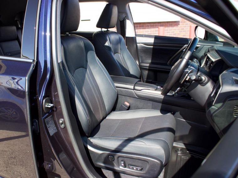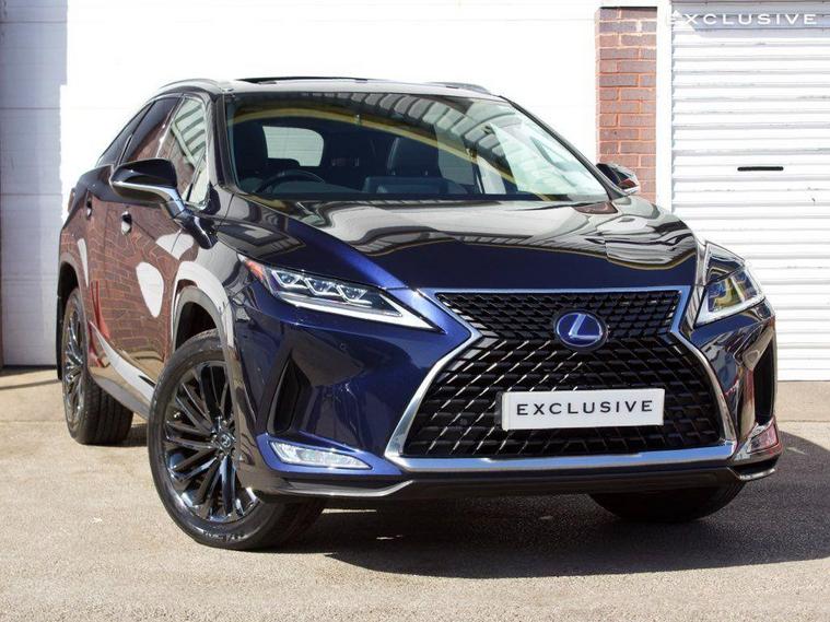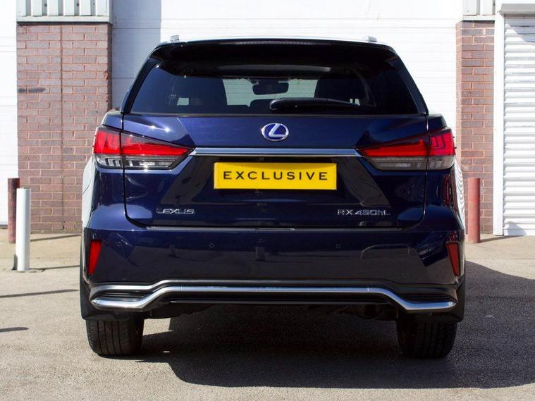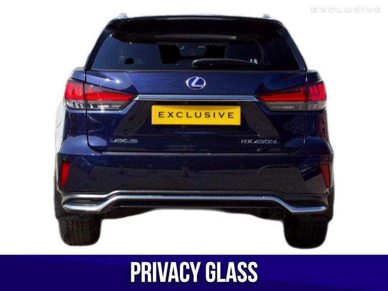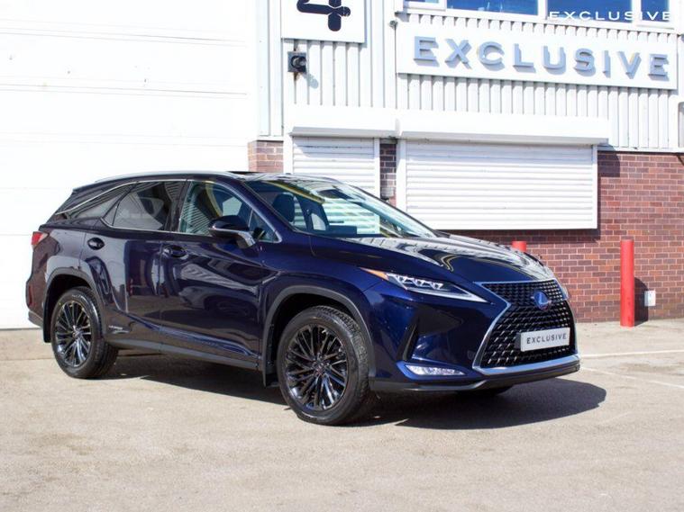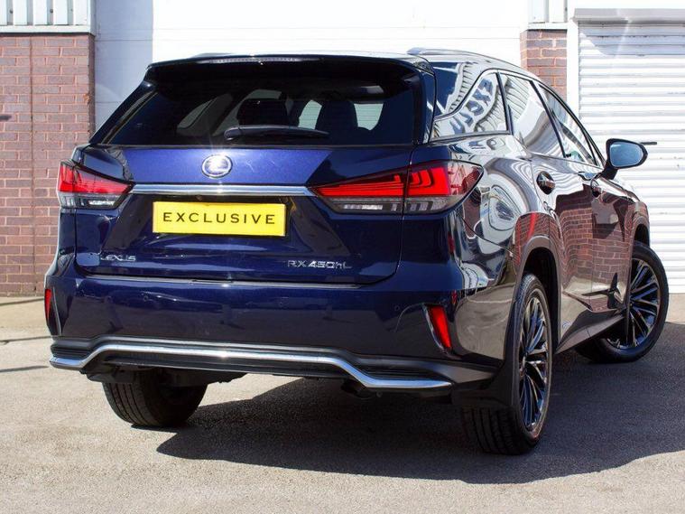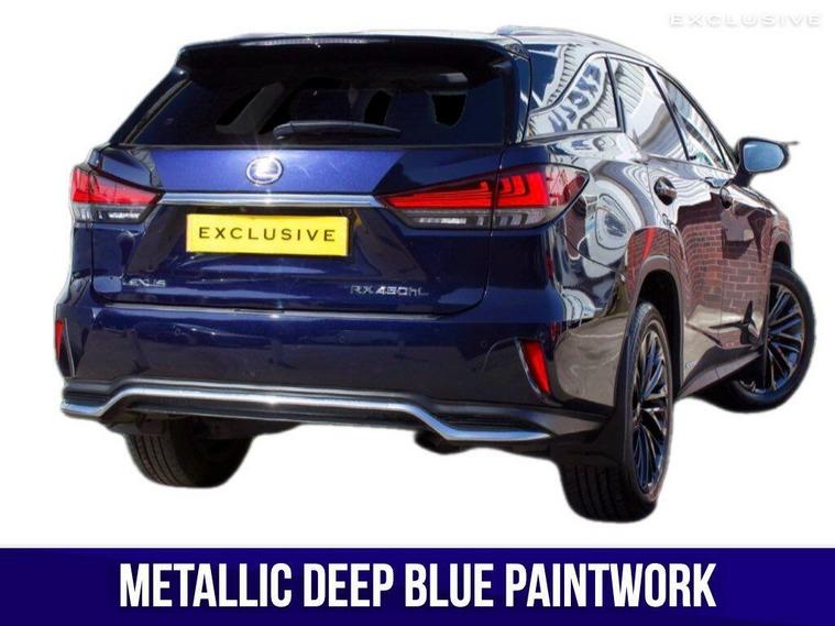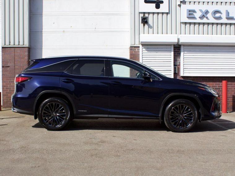 We are delighted to present this beautiful, low mileage Lexus RXL450h Premium Sport Edition benefitting from full Lexus service history . This vehicle is finished in the Metallic Deep Blue paintwork, complemented with the Black leather, and features an extensive specification such as: 20'' shadow chrome alloys, panoramic sunroof, satellite navigation, reverse camera, heated and cooled seats, heated steering wheel, blind spot monitoring, heads up display, rear cross traffic alert, 7 seat configuration, Apple CarPlay, Android Auto, and much more ; list price over £60, 000 so therefore significant saving from new!---|--- For further peace of mind, this car is eligible for Lexus relaxed warranty until September 2032 or 100, 000 mileage.Security recalls and tracker fitted carried out at the last service in May 2025 ---|---The Premium Sport Edition has a powerful road presence thanks to black-finished details that complement its elegant lines, including the front grille and door mirror covers. These are matched with black sputtered-finish 20-inch alloy wheels and a black front under-guard that emphasises the model’s SUV status. In the cabin, the signature look for the smooth leather upholstery is a combination of black and white leather with contrast stitching. The same colour theme is applied to the soft-touch surfaces on the centre console, door trims and passenger knee pad, with the grey stitching repeated around the shift lever gaiter. The steering wheel is finished in black leather and Black Open Pore Walnut, matching the cabin’s wood trim inserts, and the door panels have integrated illumination. ---|--- This specification is in addition to the established RX Premium Pack, which provides Lexus Safety System+ active safety and driver assistance systems, smooth leather upholstery, heated steering wheel, heated and ventilated front seats, a hands-free power back door, door mirrors with auto-folding, auto-dimming, reverse-tilt and memory functions and power-adjustable front seats with an auto-retract and memory function for the driver’s seat., .