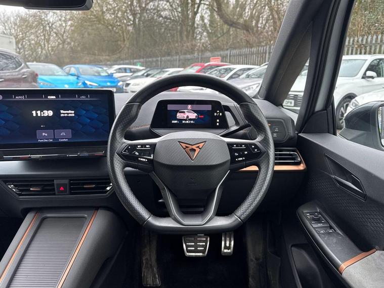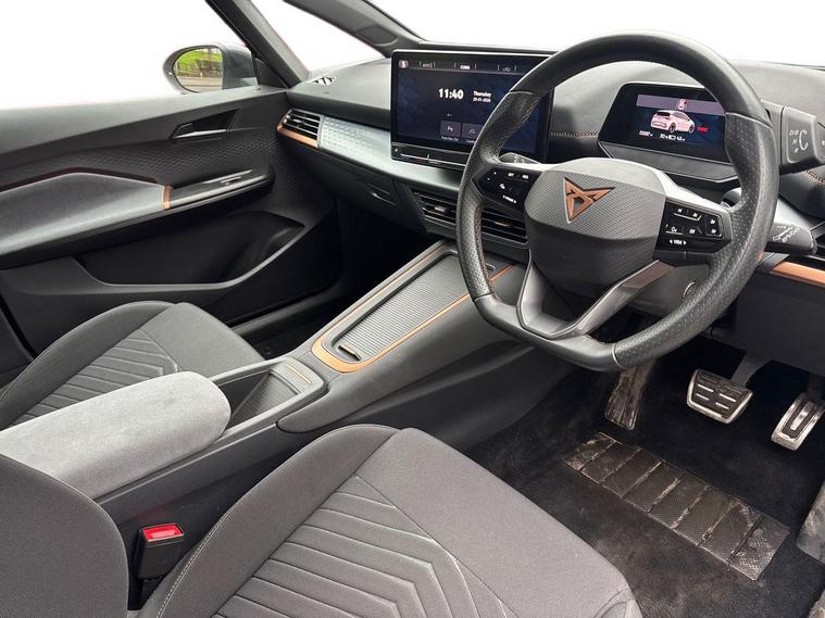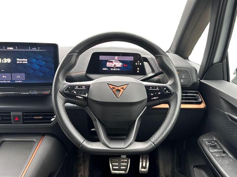 This 2023 CUPRA Born V1 presents an exceptional ownership proposition, having had only one owner from new and boasting a remarkably low mileage of just 23, 279 miles. As a fully electric vehicle, it offers a substantial battery total capacity of 62 kWh, providing a maximum range of 264 miles when new. This particular example has a clear vehicle history check, offering peace of mind. Notable features include Full LED Headlights with Welcome Home and Adverse Weather Functions, Climatronic Dual-Zone Air Conditioning, Bluetooth connectivity, and Park Assist with front and rear sensors. The Pilot M system adds adaptive cruise control and a rear-view camera for enhanced driving convenience.Experience exhilarating performance with the CUPRA Born V1's impressive 0-62mph acceleration in just 7.3 seconds, a highlight that sets it apart from many other electric vehicles. Charging is convenient, with a full charge at home on a 7kW charger taking approximately 9 hours and 30 minutes, and rapid public charging capable of reaching 80% from empty in as little as 37 minutes. The generous boot space ensures practicality for everyday needs and longer journeys. This electric hatchback combines dynamic driving with efficient technology and a spacious interior, making it a compelling choice for those seeking a modern and capable electric car..