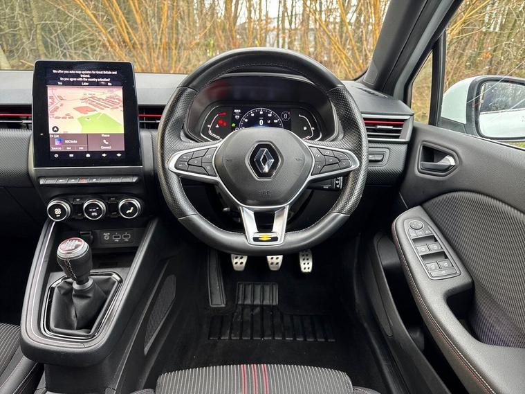 This 2021 Renault Clio TCe RS Line boasts a single owner from new, offering excellent provenance. This stylish hatchback features a 1.0 litre petrol engine and meets Euro 6 emissions standards. The RS Line trim enhances its appeal with full LED front and rear headlamps, including integrated daytime running lights. Convenience is key with a handsfree keycard for keyless entry and push button start stop, complemented by a comprehensive Parking Pack that includes front and rear parking sensors and a rear camera. Inside, you'll find the Easy Link system with a 9.3 inch screen, offering navigation, Android Auto, Apple CarPlay, and Bluetooth connectivity.This Clio is designed to impress with its highlights, demonstrating its superiority over similar vehicles. Enjoy an impressive fuel economy of 53 miles per gallon, making it an economical choice for your journeys. The large boot space provides ample room for shopping or luggage, adding practicality to its design. Furthermore, its low CO2 emissions contribute to a more environmentally conscious drive..