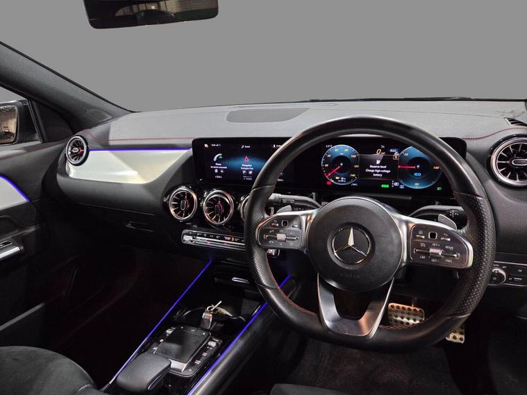 With only one owner and a remarkably low mileage of 19, 630 miles for its 2022 registration, this Mercedes-Benz EQA 350 AMG Line presents an exceptional opportunity. This electric four wheel drive model boasts a substantial 73 kWh battery, offering a maximum range of 268 miles when new. Its vehicle history check is clear, ensuring peace of mind. Inside, you'll find the sophisticated AMG Line trim, complete with heated front seats for comfort, a premium Mercedes-Benz Sound System, and a Parking Package featuring a reversing camera for effortless manoeuvring. Smartphone Integration, including Android Auto and Apple CarPlay, keeps you connected on the go, while Blind Spot Assist with Exit Warning Function enhances safety.The performance of this EQA 350 AMG Line is truly impressive, highlighted by its rapid 0-62mph acceleration in just 6.0 seconds, demonstrating its dynamic capabilities. These attributes, combined with its efficient electric powertrain, set it apart from other vehicles. Charging is convenient, with a full charge at home on a 7kW charger taking approximately 10 hours and 16 minutes, and a rapid charge to 80% achievable in as little as 34 minutes at a public charging station. This combination of low ownership, minimal mileage, advanced technology, and strong performance makes this Mercedes-Benz EQA a compelling choice..