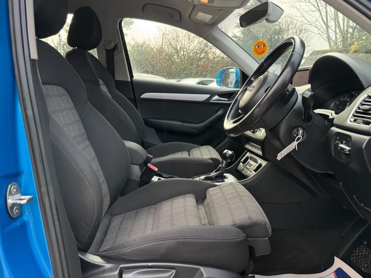 With a powerful 2.0-litre petrol engine, this beautiful blue Audi Q3 is ready to be driven away. Recently serviced & HPI Clear. Comes with 2 Keys and 6 Months Warranty Included. Finance Available – Apply with confidence✅ AA Approved Dealer – Buy with peace of mind✅ 12 Months AA Breakdown Cover✅ Drive Away Insurance Available (subject to terms and conditions) A well-maintained example ready to drive away today!✨ Optional Extras & Key Features:DAB Radio with Bluetooth & BT Connect – crystal-clear sound and easy hands-free calls.Parking Sensors – avoid bumps and park with precision.Daylight Running Headlights (LED) Pre-Collision Detection – an advanced safety system to help prevent accidents.Cruise Control – relax on long journeys with steady speed control.Dual Climate Control AC Engine Start/StopQuattro And many more premium features designed to make every drive enjoyable.? Buy With Confidence:? 120-Point Vehicle Check? Fully Valeted? Delivery Available – Home or workplace?6-Month GOLD Warranty – Full Parts & Labour (Upgradable)? AA Approved Dealer – Includes 12 Months Free Breakdown Cover? 5-Day Driveaway Insurance Available (T&Cs Apply).