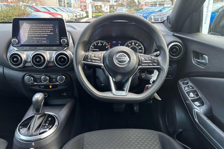 This 2020 Nissan Juke DIG-T Acenta is a Nissan manufacturer approved vehicle, offering peace of mind. This stylish hatchback features a 1.0 litre petrol engine and meets Euro 6 emission standards. Inside, you'll find convenient steering wheel mounted gearshift paddles, along with Apple CarPlay and Google Android Auto integration, allowing seamless connection of your smartphone. Parking is made easier with the included rear view camera and parking assistance.The Juke DIG-T Acenta is designed to be economical to run. It achieves an impressive fuel economy of 46 miles per gallon, which is a highlight indicating it performs better than many similar vehicles. Furthermore, its low insurance group and low CO2 emissions also highlight its cost effectiveness and environmental consideration compared to other cars in its class..