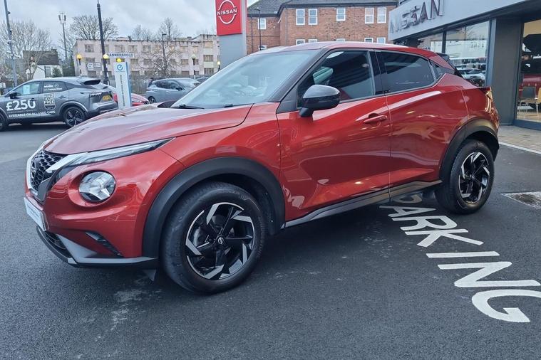 This 2023 Nissan Juke DIG T N Connecta is a superb example, having had only one owner since new. This stylish compact SUV is powered by an efficient 1.0 litre petrol engine, meeting Euro 6 emissions standards. It comes equipped with a rear parking camera and rear parking sensors to aid manoeuvring, alongside LED headlights for improved visibility. Convenience is enhanced by the Intelligent Key with a push button start, allowing keyless entry and ignition, and you can stay connected with USB, AUX, and Bluetooth connectivity.The fuel economy of this Juke is a notable highlight, achieving an impressive 49 miles per gallon, which indicates it is more economical than many similar vehicles. Furthermore, its low CO2 emissions also set it apart, suggesting a more environmentally friendly performance. This combination of efficiency and modern features makes the 2023 Nissan Juke DIG T N Connecta a compelling choice.? DRIVE AWAY WITH MORE AT NISSAN ALDERSHOT ?-£250 Deposit Finance Allowance (DFA) – We help with your upfront cost!-Up to 2 Years FREE Servicing – Total peace of mind for the road ahead.-Flexible PCP Finance – Low monthly payments tailored to your budget.Ready to take the next step? Call the team at Nissan Aldershot today on 01252270041 to find out more or book your test drive.Terms and conditions apply. Offers available on PCP (Personal Contract Purchase) agreements for selected vehicles only. Finance subject to status. All offer details and full T&Cs can be confirmed via the dealership on 01252270041..