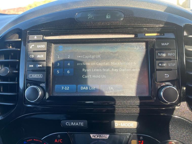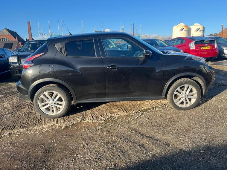 NISSAN JUKE 1.2 DIG-T N-CONNECTA IN A BLACK EXTERIOR COLOUR WITH BLACK HALF LEATHER INTERIOR... COMES WITH A COMPREHENSIVE SERVICE HISTORY... COMES WITH LONG MOT... FEATURING REVERSE CAMERA... KEYLESS ENTRY AND START...PRIVACY GLASS... TOUCHSCREEN RADIO WITH BLUETOOTH CONNECTIVITY, BUILT IN SATNAV AND RADIO SETTINGS... MULTIFUNCTION STEERING WHEEL WITH RADIO AND CRUISE CONTROL... AUTO STOP/START... TYRE PRESSURE RESET CONTROL... CLIMATE CONTROL WITH FRONT AND REAR HEATED WINDOWS... FUEL CAP RELEASE LEVER... ELECTRIC ADJUSTABLE SIDE FOLDING MIRRORS... ALL ROUND ELECTRIC WINDOWS... CENTRAL LOCKING DOOR CONTROLS... CUP HOLDERS... ALLOY WHEELS WITH DECENT TREAD ALL ROUND... WARRANTY INCLUDED... ALL PART EXCHANGES ARE WELCOME... OPTIONAL NATIONWIDE DELIVERY EXTRA... BOOK-INS AND VIDEO VIEIWNGS ARE AVAILABLE... TEST DRIVES ARE WELCOME... FOR MORE INFORMATION CALL US TODAY ON 01616232309..