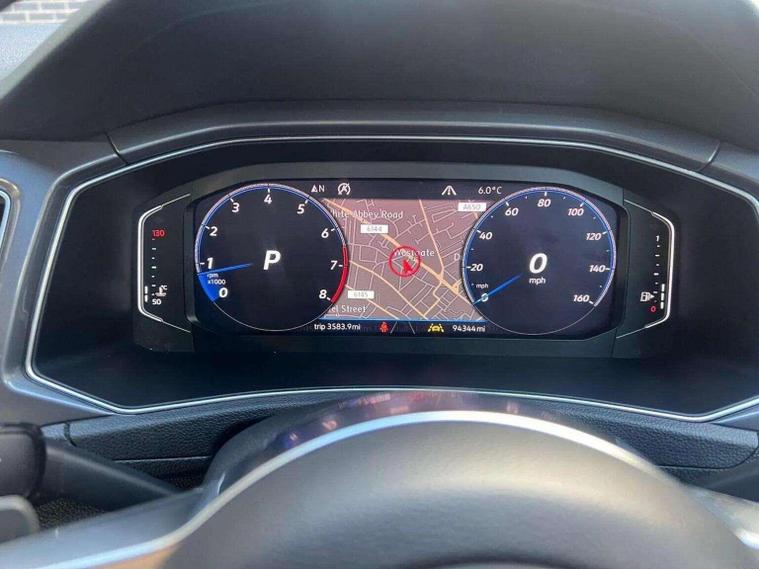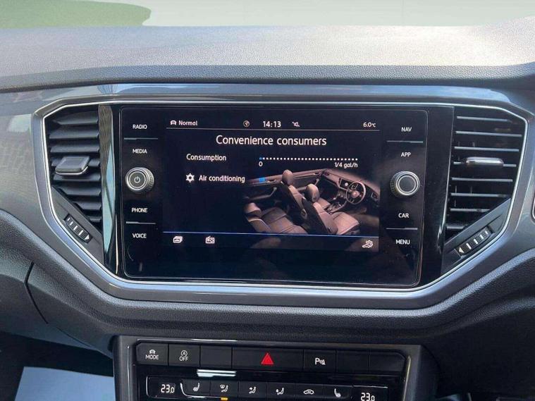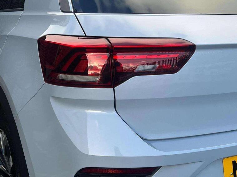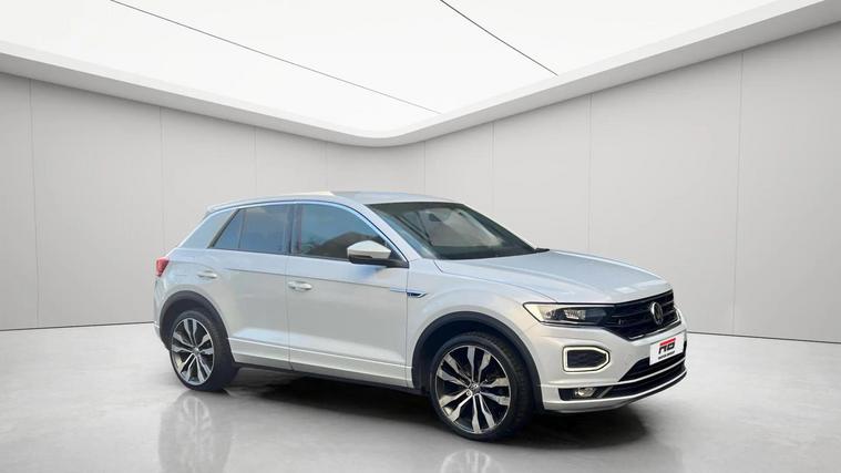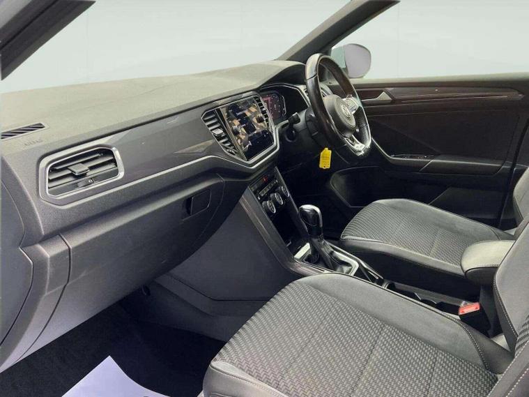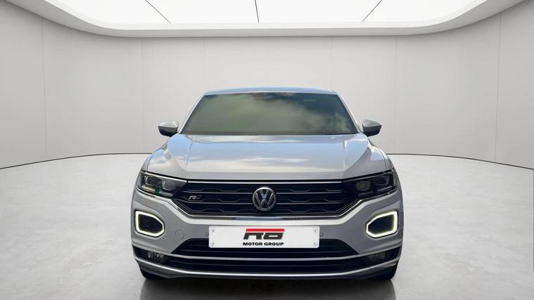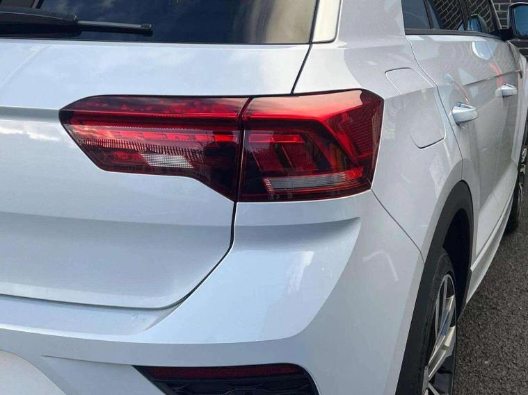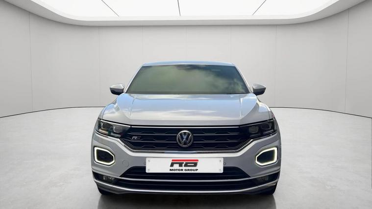 Volkswagen T-Roc 1.5 TSI EVO R-Line DSG automatic finished in silver, appearing white, with R-Line leather, Alcantara and cloth interior. This ULEZ compliant SUV benefits from four main dealer services and will be supplied with a pre-delivery service and long MOT for peace of mind. High specification includes digital cockpit, satellite navigation, reverse camera, front and rear parking sensors, heated seats and adaptive cruise control with hill hold assist. Further features include paddle shift, flat bottom multifunction steering wheel, smartphone media connectivity, DAB radio and USB ports. R-Line styling is enhanced by 19 inch black gloss alloy wheels, folding heated electric door mirrors, front fog lights and privacy glass. A stylish, refined and practical automatic SUV offering excellent performance and comfort. Finance available, warranty provided and nationwide delivery can be arranged. Open seven days a week. View full stock at dealer's website