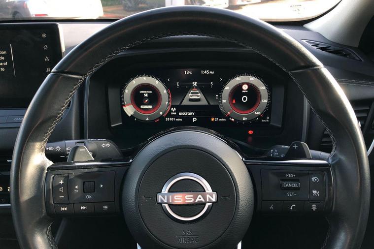 This 2022 Nissan Qashqai DIG-T N Connecta is a Nissan manufacturer approved vehicle, offering you complete peace of mind with 12 months warranty and a full service history. Powered by an efficient 1.3L Petrol Hybrid engine and meeting Euro 6 emission standards, this N Connecta trim model combines modern technology with practicality. It comes equipped with a Rear View Camera for parking assistance, Intelligent Blind Spot Intervention, and an Intelligent Around View Monitor that provides a 360 degree camera view, alongside Blind Spot Warning and Rear Parking Sensors.The Qashqai DIG-T N Connecta stands out with its low insurance group, making it an economical choice for many drivers. You will also appreciate the generous boot space, perfect for shopping trips or family holidays. These features, combined with its advanced safety and parking assistance systems, demonstrate how this Qashqai offers a superior driving experience compared to other vehicles in its class..