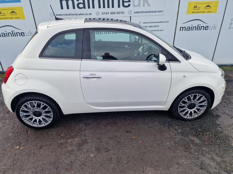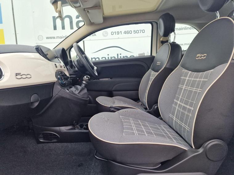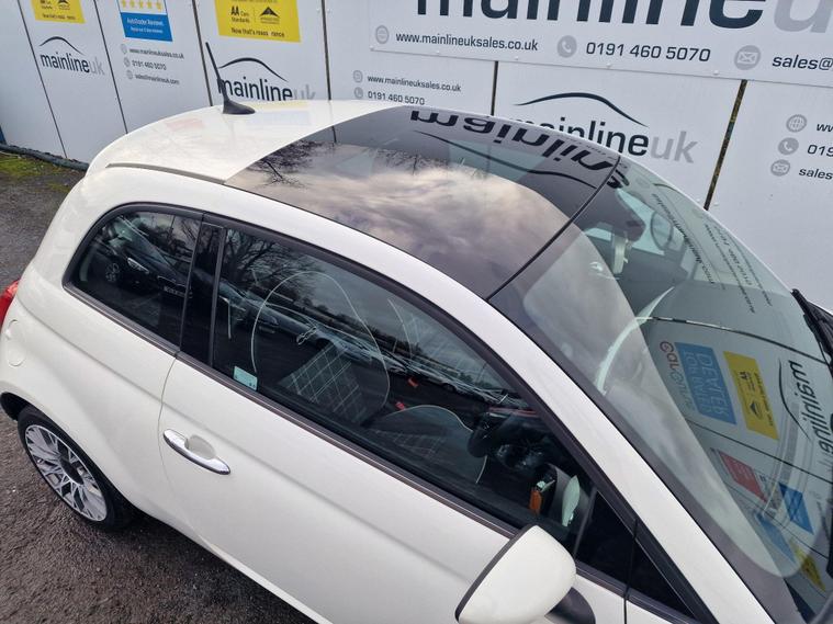 This 2019 Fiat 500 Lounge is presented with a full 12 months MOT for your peace of mind. This stylish city car features a 1.2 litre Euro 6 compliant petrol engine, making it an economical choice. The Lounge trim level comes well equipped, including desirable features such as the Tech Pack which offers seamless integration with Android Auto and Apple CarPlay, alongside Bluetooth connectivity for calls and music. You'll also find striking 16 inch alloy wheels, a clear and informative 7 inch TFT instrument cluster, and a fixed glass roof with a sunblind, creating an airy feel within the cabin.The Fiat 500 Lounge is known for its compact size and ease of use, and this particular model benefits from air conditioning to keep you comfortable in all conditions. Its low insurance group rating is a significant advantage, indicating that running costs are likely to be lower compared to many other vehicles in its class. This combination of practical features, modern technology, and cost effective ownership makes this 2019 Fiat 500 Lounge a compelling option..