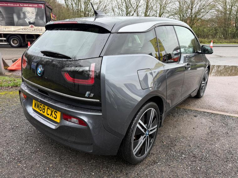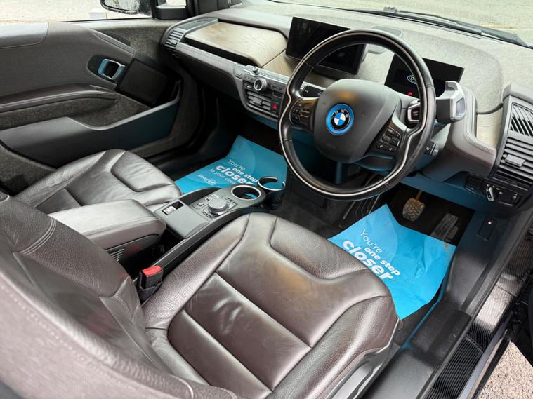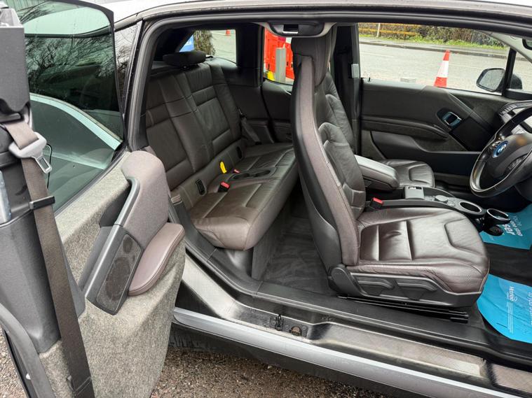 This 2018 BMW i3 boasts a full service history, with its last service completed at 50, 480 miles, offering excellent provenance. This petrol plug in hybrid model meets Euro 6 emissions standards. Inside, you'll find the luxurious Interior World Suite featuring Stellaric Natural Leather in Dalbergia Brown with a Black Interior, complemented by the premium Harman Kardon loudspeaker system for an exceptional audio experience. The vehicle also includes Online Entertainment and is fitted with striking 20 inch i BiColour Light Double Spoke Style alloy wheels with mixed tyres.The Park Assist Package, which includes front and rear sensors along with a rear camera, makes manoeuvring and parking effortless. These features, combined with the advanced hybrid powertrain and the high specification interior, demonstrate how this BMW i3 stands out from other vehicles in its class, offering a refined and technologically advanced driving experience..