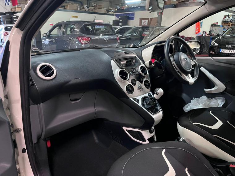 ? 1 Lady Owner From New | Low Mileage | Full Service History ?This is a rare opportunity to own an exceptionally well cared for 2015 (65) Ford Ka 1.2 Zetec White Edition, finished in crisp white and boasting just 24k miles from new. Supplied by one lady owner, this car comes with a full service history and a long MOT, so it is fully prepared for its next owner. The MOT runs until January 2027, it has 4 brand new tyres, and it benefits from only £35 annual road tax. Fully Euro 6 and ULEZ compliant, making it ideal for city driving.✅ 1.2 Petrol | Manual✅ Euro 6 | ULEZ Compliant✅ MOT to January 2027✅ Full Service History ✅ £35 Road Tax | 4 New Tyres✔ White Edition styling with black 16in alloy wheels✔ Air conditioning✔ Bluetooth hands-free & USB connectivity✔ Heated front windscreen & washer jets – perfect for winter✔ Leather steering wheel with white accents✔ Front fog lights & privacy glass✔ Electric heated door mirrors✔ Hill start assist & electronic stability control✔ ISOFIX rear seats & split-folding rear bench? This Ford Ka is cheap to insure, economical to run, and extremely easy to drive, making it an excellent choice for first-time drivers, city commuters, or anyone wanting a dependable small car with standout condition. The very low mileage and single ownership truly set this example apart from others on the market.Emissions Charge / ULEZ Compliant!Enjoy a free 6-month warranty and breakdown cover with your purchase. We offer flexible finance options, including zero-deposit plans, suitable for all credit histories—contact us for a no-obligation quote. With over 100 vehicles in stock, please call ahead as not all vehicles are on-site. Payments accepted via bank transfer only. As car finance specialists, we can assist customers with low or poor credit scores—apply online or call for more details.? Contact us: 01163432676 ? View our stock: dealer's website