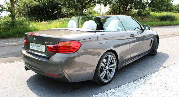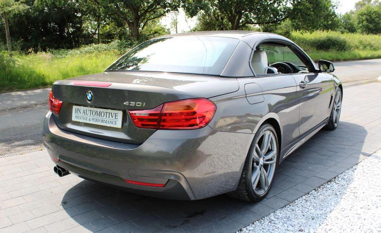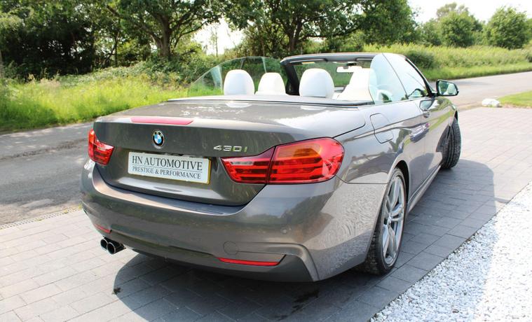 HN Automotive proudly presents this rare BMW 430i M Sport Convertible, finished in the beautiful BMW Individual Champagne Quartz with Opal Merino leather interior, also from the BMW Individual range. This car has had just three owners from new (purchased from the lease company at the end of the term so two owners in theory), supplied with a full service history and a great range of optional extras, including:- Surround view parking cameras- Comfort Access - M Sport Plus Pack - Neck scarf system - Harmon Kardon sound system - Power folding door mirrors - Electrically adjustable front seats with driver memory Full service history provided, being a mix of main BMW dealer and BMW specialist, including over £3, 000 of additional work in the past 12 months, including replacement timing chain. In brilliant condition throughout, with very clean and tidy bodywork, with the colour looking fantastic, especially in direct sunlight. The alloy wheels have just been professionally refurbished, whilst the Bridgestone tyres all have plenty of tread left. The interior is also in great condition and the upgraded Merino leather gives the cabin a classy feel.Supplied with the full handbook pack, x2 keys and locking wheel nut, along with every service invoice and MOT from brand new. HN Automotive can also provide both finance and part exchange facilities - feel free to get in touch with our team for more information. Viewings are welcomed by appointment, simply give us a call, send us a message or book a test drive at your convenience, directly via our website..