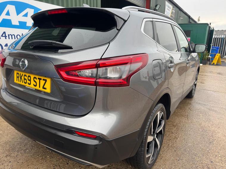 This 2019 Nissan Qashqai DIG-T Tekna presents an exceptional opportunity with its remarkably low mileage of just 38581 miles for its age. Powered by an efficient 1.3L petrol engine and meeting Euro 6 emissions standards, this Tekna trim model is equipped with a host of desirable features. These include the Intelligent Around View Monitor with a 360 degree camera for effortless parking, Bluetooth connectivity, and a Heat Pack for cosy journeys with heated seats. The Smart Vision Pack adds front and rear parking sensors, while the Glass Roof Pack brings a fixed panoramic sunroof, enhancing the spacious feel of the cabin.Further enhancing its appeal, this Qashqai benefits from a low insurance group, making it an economical choice for many drivers. Its low CO2 emissions also contribute to its cost effectiveness and environmental consideration. With an MOT valid until October 2026, this vehicle offers peace of mind and is ready for its next owner to enjoy its blend of comfort, technology, and practicality..