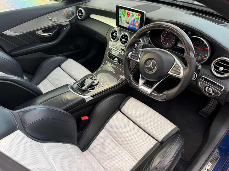 Finished in the striking Brilliant Blue, this Mercedes-AMG C63 S Premium (W205) represents the peak of modern AMG before dilution set in. A car defined by excess in the best possible way—engineered without apology and enhanced with restraint and intent.At its heart is the legendary 4.0-litre V8 BiTurbo, a powerplant revered for its torque delivery, brutality, and unmistakable character. This example has been professionally upgraded with a Stage 2 MSL tune and performance downpipe, unlocking sharper response, increased urgency through the mid-range, and a soundtrack that borders on antisocial when provoked. The factory AMG Performance Exhaust System completes the experience—valved, thunderous, and endlessly addictive.Visually, the car is elevated well beyond standard. Equipped with both AMG Exterior Carbon-Fibre Trim Packages 1 and 2, the exterior is finished with factory carbon elements that perfectly complement the deep metallic blue paintwork. This is further enhanced by a full CT Carbon body kit, adding aggression without sacrificing OEM-level fit and finish. Sitting confidently on Vossen alloy wheels, wrapped in brand new Michelin Pilot Sport 4 tyres, the stance is purposeful, planted, and exactly as a C63 S should look.Step inside and the contrast continues. The cabin is trimmed in Platinum White and Black Nappa leather, creating a sharp, premium environment that feels special every time you open the door. It’s a space that balances luxury with intent—clearly built around the driver. A professionally retrofitted Apple CarPlay system brings modern connectivity seamlessly into the cockpit, ensuring day-to-day usability matches the car’s performance credentials.This is not a modified car thrown together for attention.It’s a well-specified, correctly upgraded C63 S that respects the engineering while enhancing everything that makes it special.No artificial sound.Just a handcrafted AMG V8, done properly..