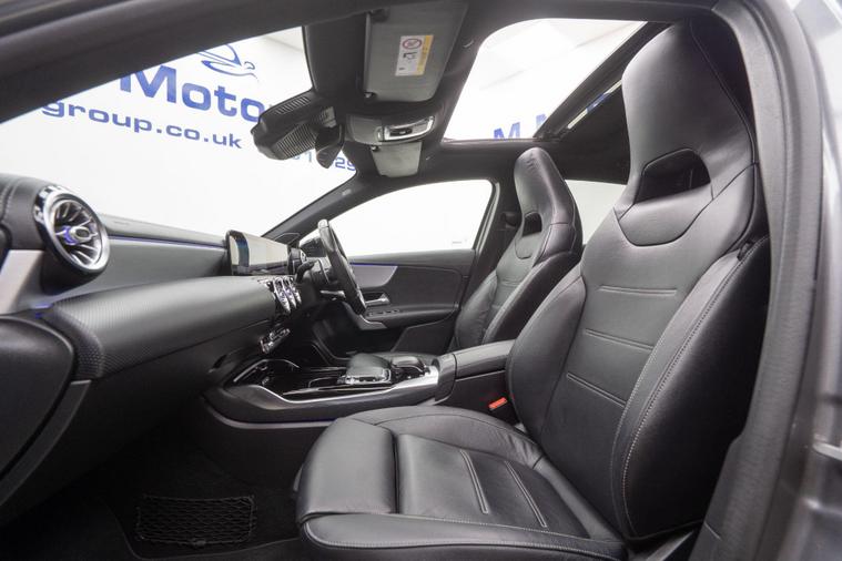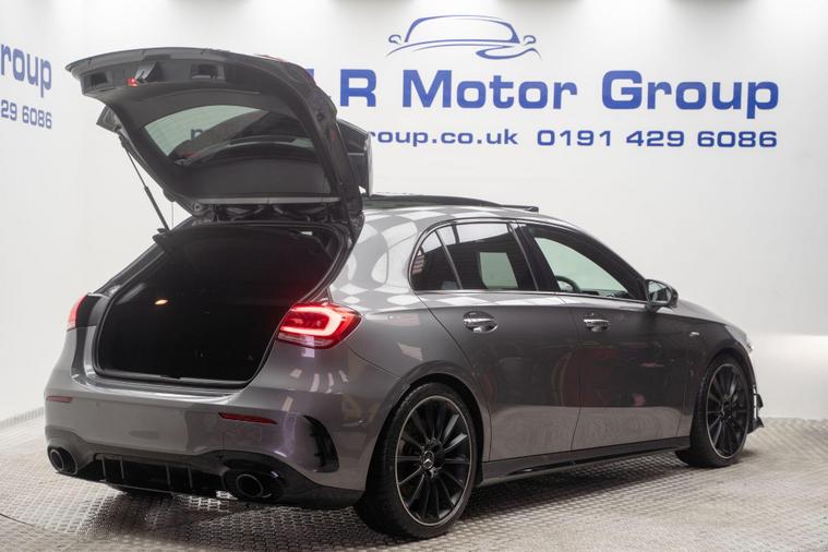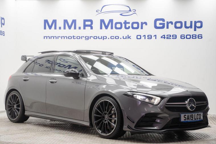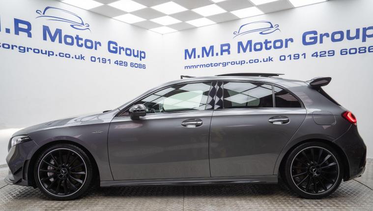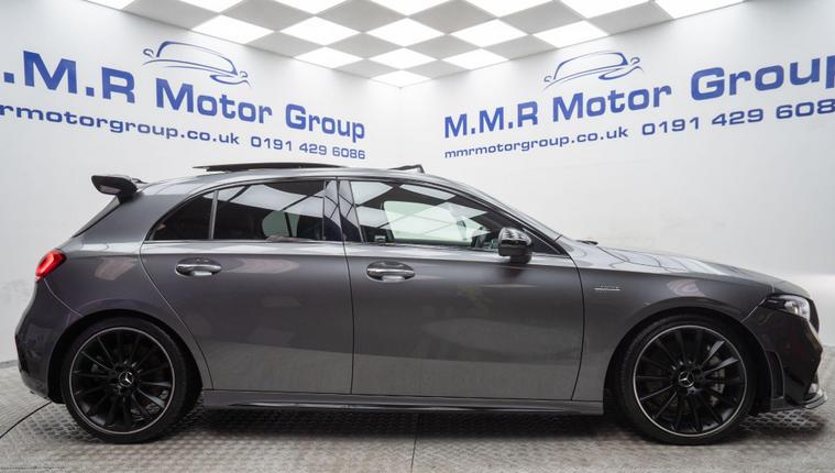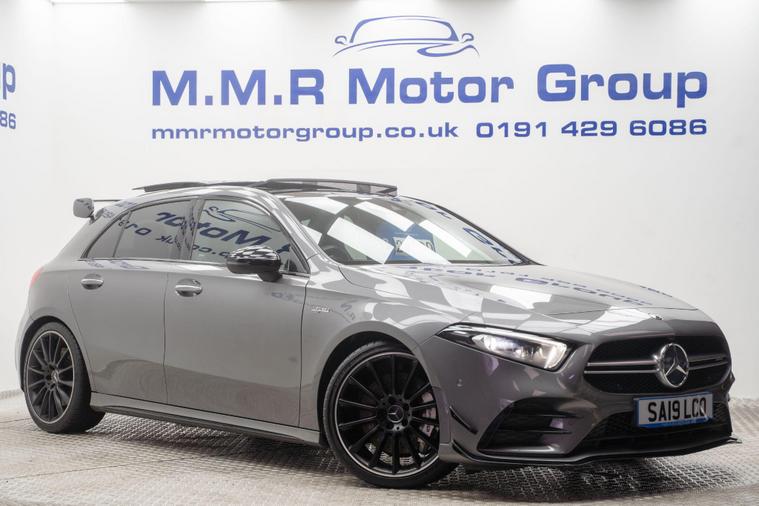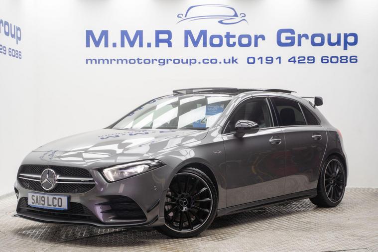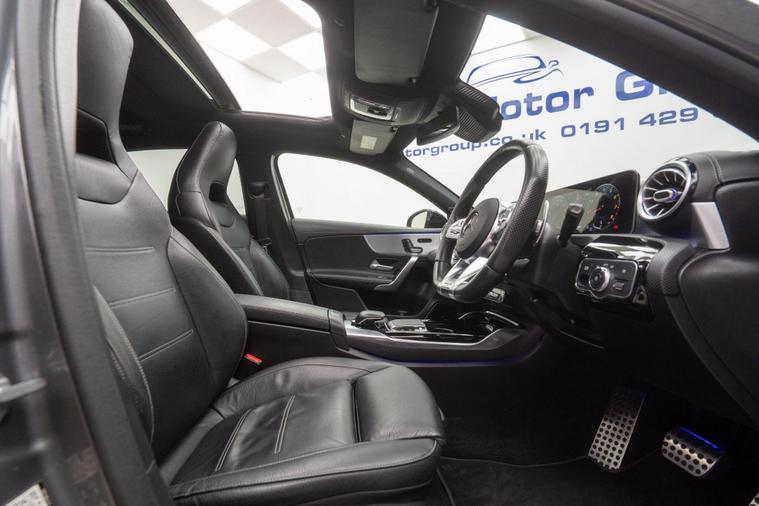 This Mercedes Benz A Class A35 AMG Premium Plus boasts exceptionally low mileage for its year, having covered just 39, 680 miles. This Euro 6 compliant model features a powerful 2.0L petrol engine paired with a four wheel drive drivetrain, offering dynamic performance. It comes equipped with the desirable AMG Style Package, AMG Advanced Navigation Package including a Head Up Display, and the AMG Night Package. The Premium Plus Package further enhances the experience with a Burmester sound system, LED headlights, keyless entry, an opening panoramic sunroof, front and rear parking sensors, heated and memory seats, and dual Bluetooth interface with two USB Type C ports.The A35 AMG variant stands out with its impressive acceleration, achieving 0-62mph in a swift 4.7 seconds, demonstrating its performance capabilities. This acceleration figure indicates a superior driving experience compared to many similar vehicles. Additionally, the large boot space offers practicality for everyday use and longer journeys.Please call our experienced sales team on 01914800597 for any additional specification queries, an in depth appraisal/ Video call or maybe we can help fund your new car. All our vehicles are prepared to the highest standards by our expert technicians in our fully equipped preparation centre as we're an AA approved dealer. Every car must go through a strict and thorough inspection, Items that require attention, mechanically or cosmetically are addressed prior to delivery. We offer a wide range of Finance and Warranty packages as well as fantastic trade rates for allow wheel refurbs/colour changes, window tinting and much more. All our vehicles are subject to a £199 service support fee and are therefore supplied with pre delivery service, 12 months MOT, 12 months AA breakdown cover and 6 months Auto Protect warranty that can be extended up to 24 month. All vehicles are HPI clear a full report can be supplied at point of sale. Home Delivery can be arranged throughout the UK. We welcome part exchanges and can tailor finance packages to suit you..