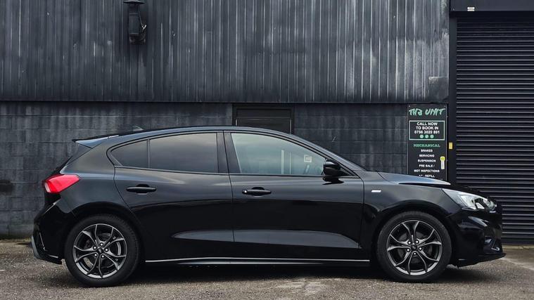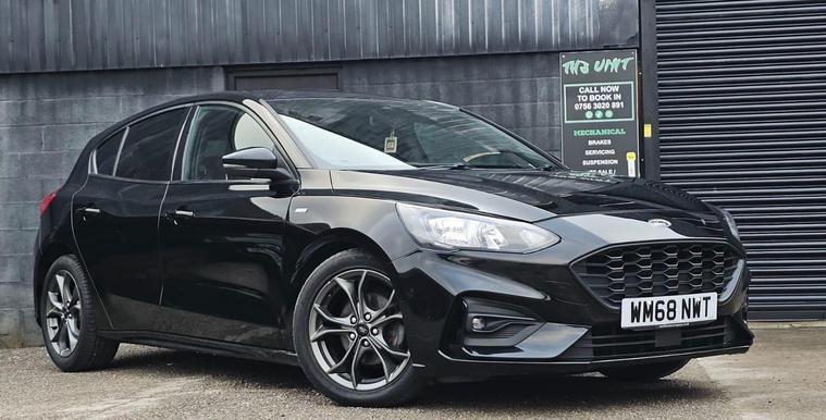 This 2018 Ford Focus ST-Line T offers a compelling blend of style and technology, making it a standout choice. Powered by an efficient 1.0 litre petrol engine, this Euro 6 compliant model boasts low CO2 emissions, contributing to a more environmentally conscious drive. Inside, you'll find the intuitive Ford SYNC3 DAB Radio system, complete with a striking floating 6.5 inch touchscreen that seamlessly integrates Android Auto and Apple CarPlay for your convenience. The inclusion of automatic headlights further enhances the driving experience, providing added visibility and ease.The performance of this Focus ST-Line T is equally impressive, achieving 0-62mph in a brisk 10.0 seconds. These highlights demonstrate how this particular vehicle offers a superior driving experience compared to others in its class. Its combination of modern features, efficient engine, and engaging performance makes it a well rounded and desirable option for any driver..